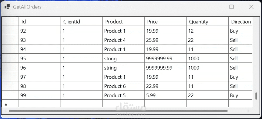 قمت بهذا المشروع في فترة تدريبي في شركة EFG Holding، إنه برنامج بسيط يحاكي المداولة في البورصة، يشمل ظهور الطلبات مباشرة فور طلبها (streaming) واستخدمت في هذا SignalR وRabbitMQ، قمت أيضا بوضع جزئية تسجيل المستخدمين على Docker، والمنتجات يتم وضعها في ذاكرة التخزين المؤقتة (cache) لسهولة استرجاعها وتخفيف الحمل على السيرفر، استخدمت Redis للقيام بذلك.
