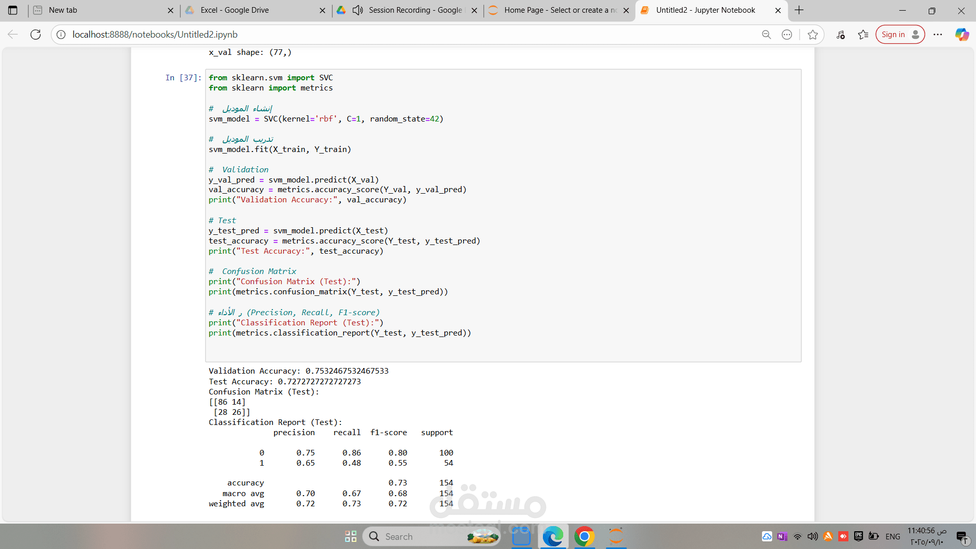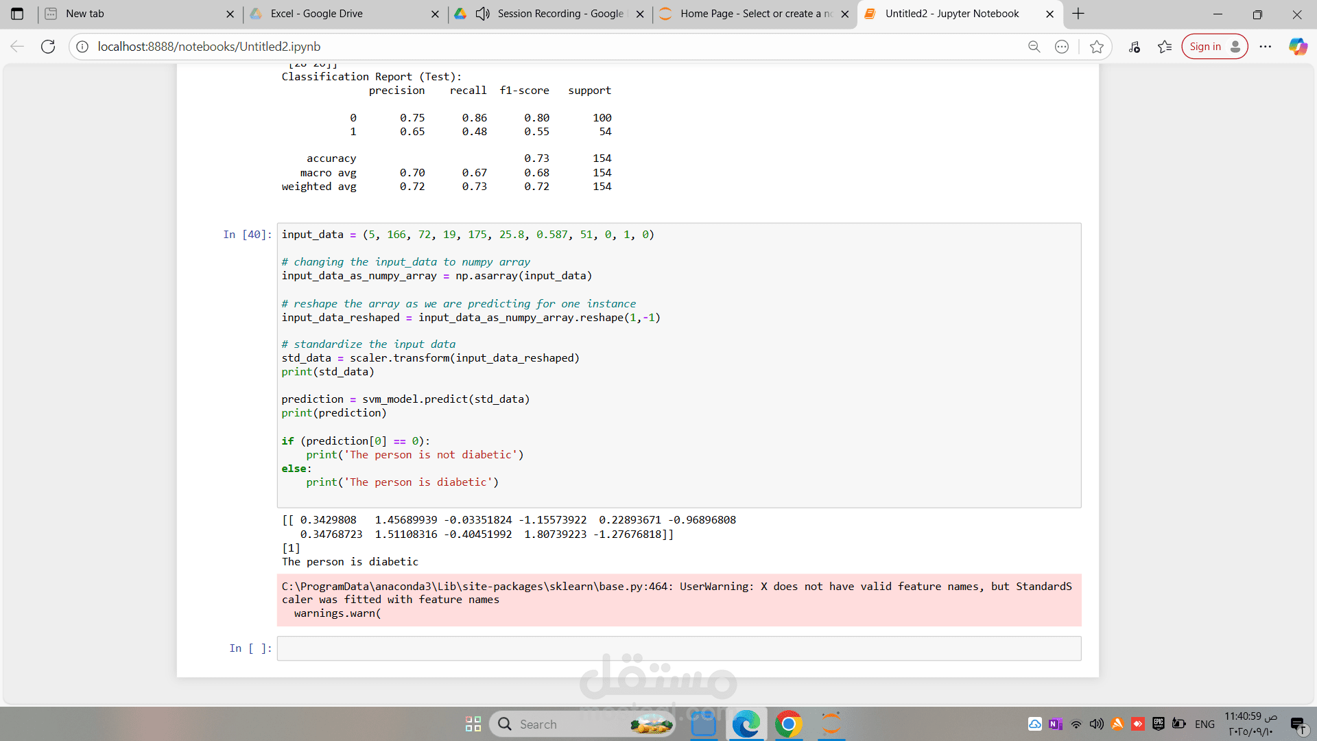 قمت بتطوير نموذج ذكاء اصطناعي للتنبؤ بمرض السكري اعتمادًا على بيانات طبية حقيقية تتضمن عوامل مثل نسبة الجلوكوز، مؤشر كتلة الجسم، العمر، وعدد مرات الحمل. ركّز المشروع على بناء نموذج تصنيف باستخدام خوارزمية Support Vector Machine (SVM) لتحقيق دقة عالية في التنبؤ، مع الاستفادة من تقنيات Feature Engineering لتحسين جودة البيانات مثل تحويل مؤشر كتلة الجسم إلى فئات (BMI Categories). النموذج يساهم في دعم القرارات الطبية المبكرة عبر تقديم تنبؤ سريع باحتمالية إصابة المريض بالسكري.