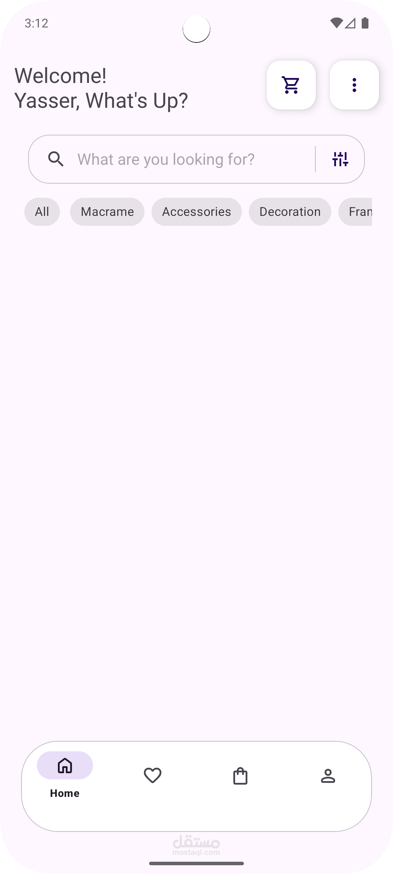 An e-commerce application designed for a handmade crafts brand. Features two panels: