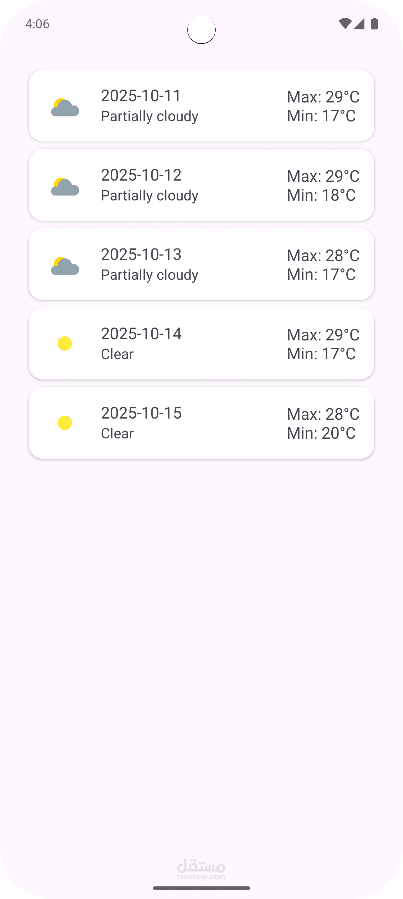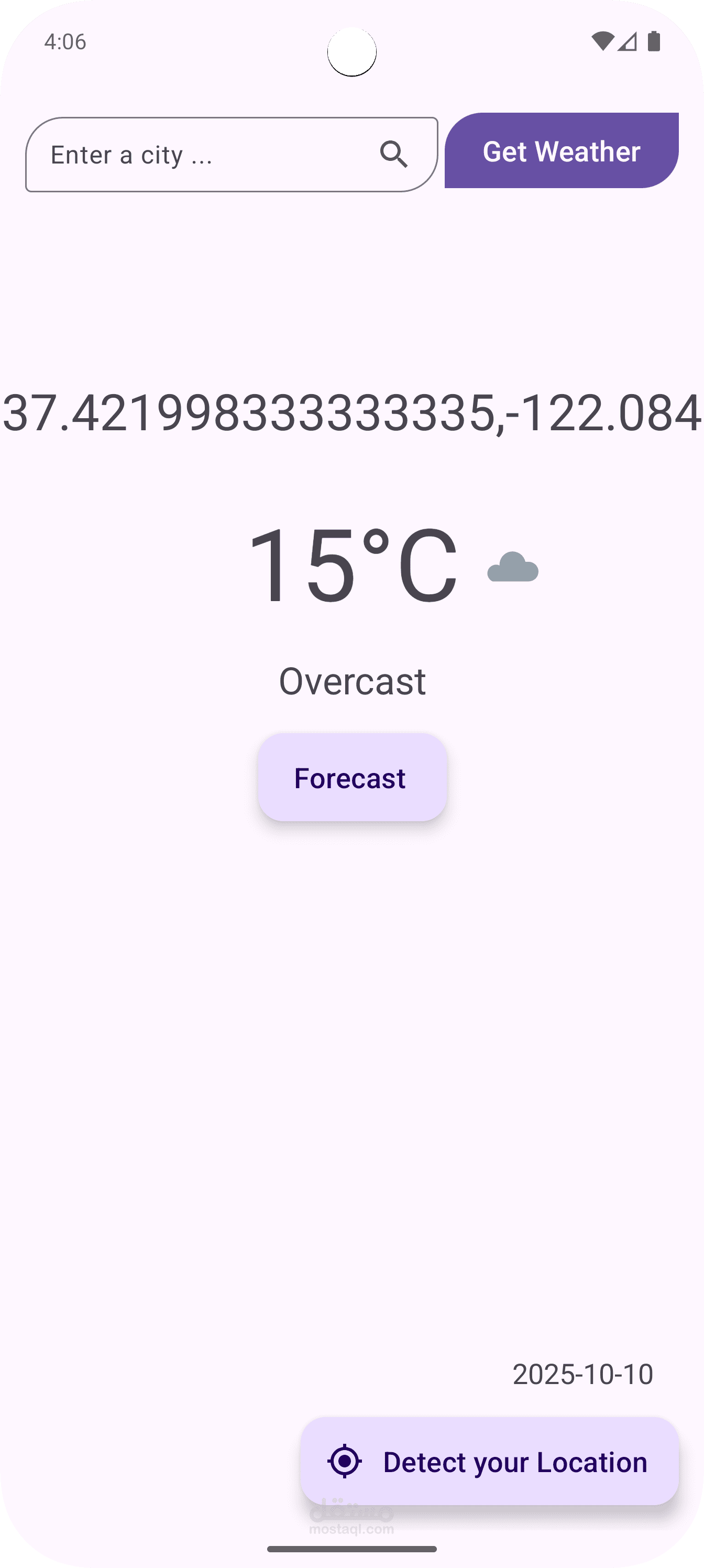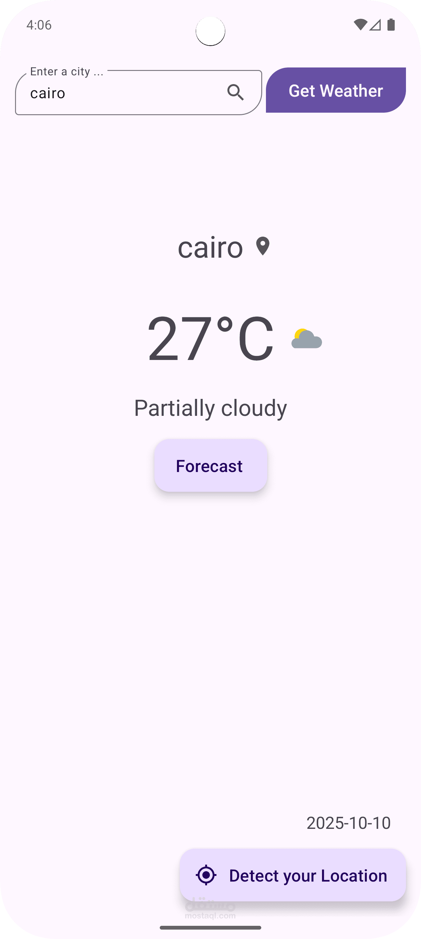 A modern weather app delivering real-time forecasts by city search. Includes auto-suggested city names, daily & weekly forecasts, and a clean UI. Built with MVVM and RESTful API integration for a smooth experience.
