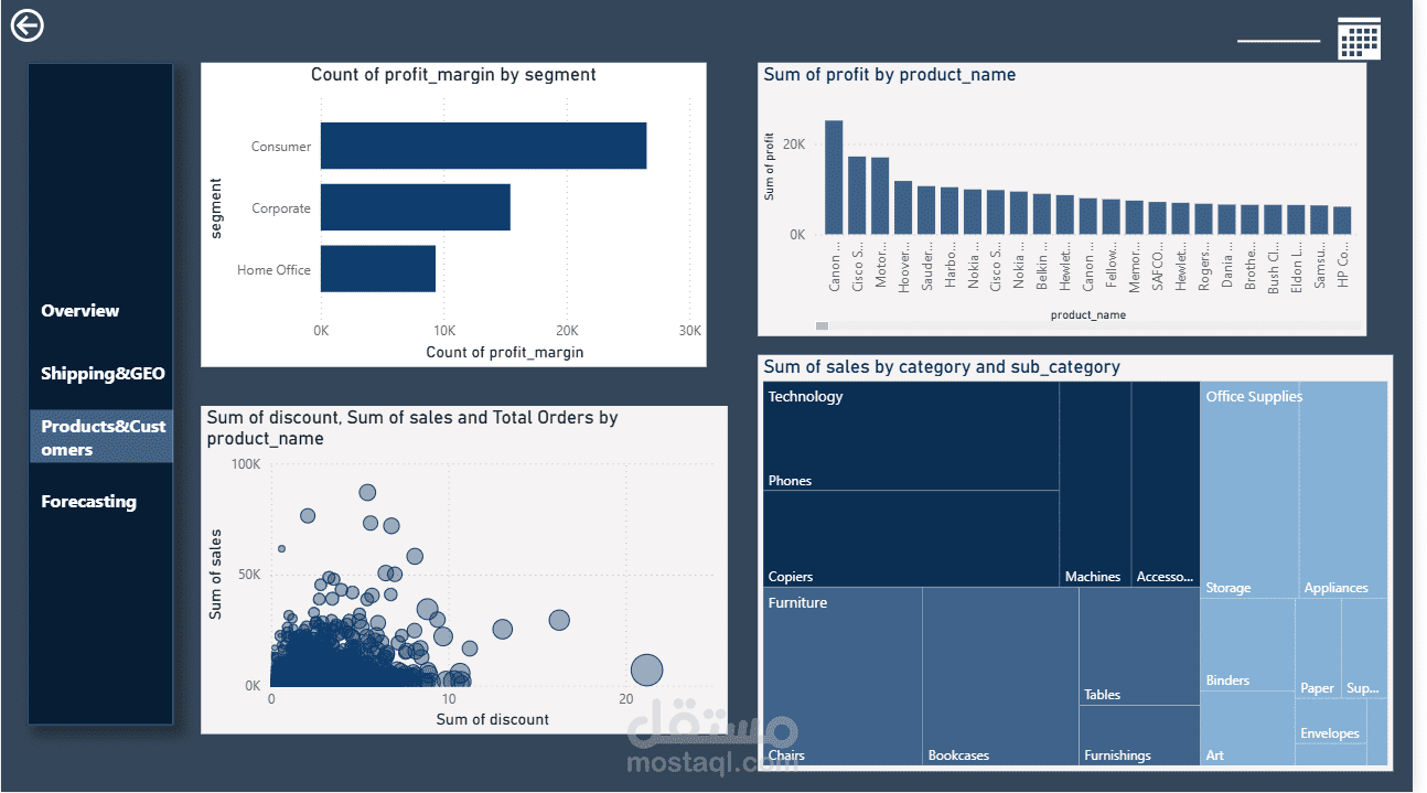 This project presents an interactive sales dashboard built to analyze and monitor the performance of a retail store. The dashboard provides a comprehensive overview of sales, profit, orders, and customer behavior across multiple dimensions.