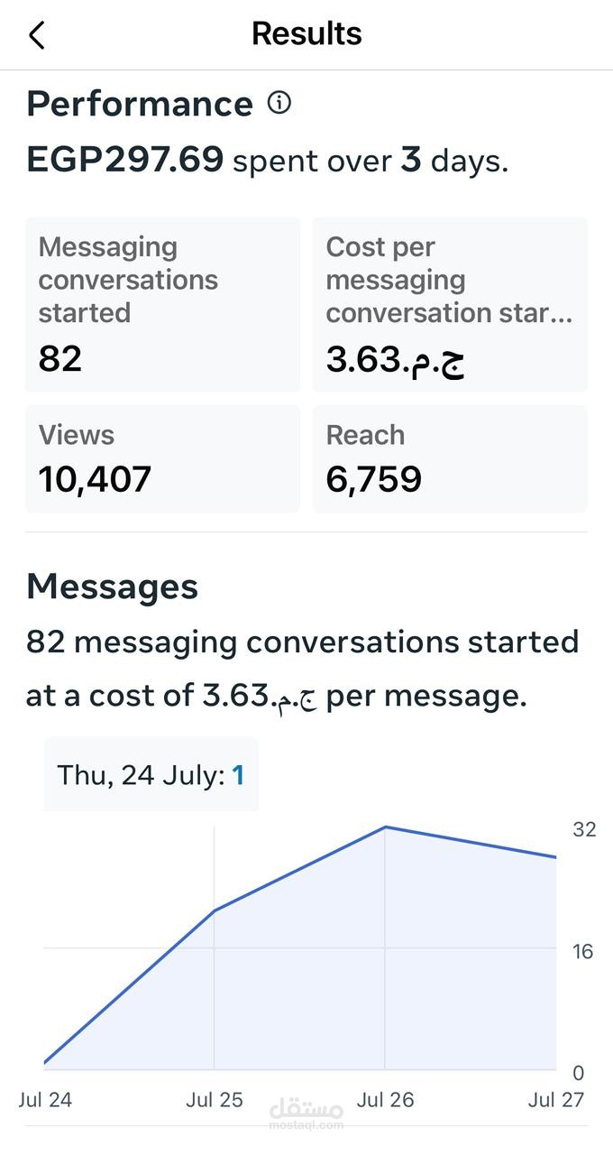 تم اطلاق الاعلان تيست لمدة ٣ ايام ب مبلغ قدره ١٠٠جنيه مصري يوميا