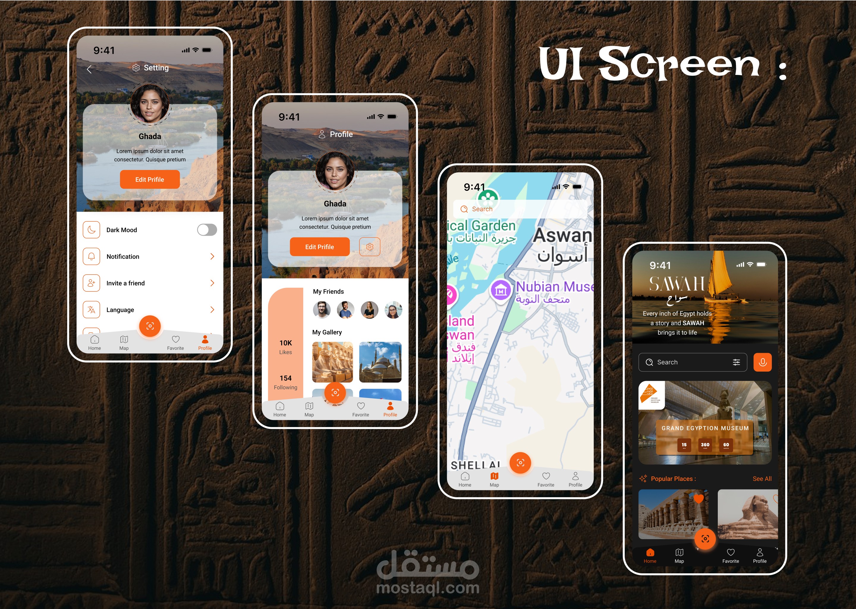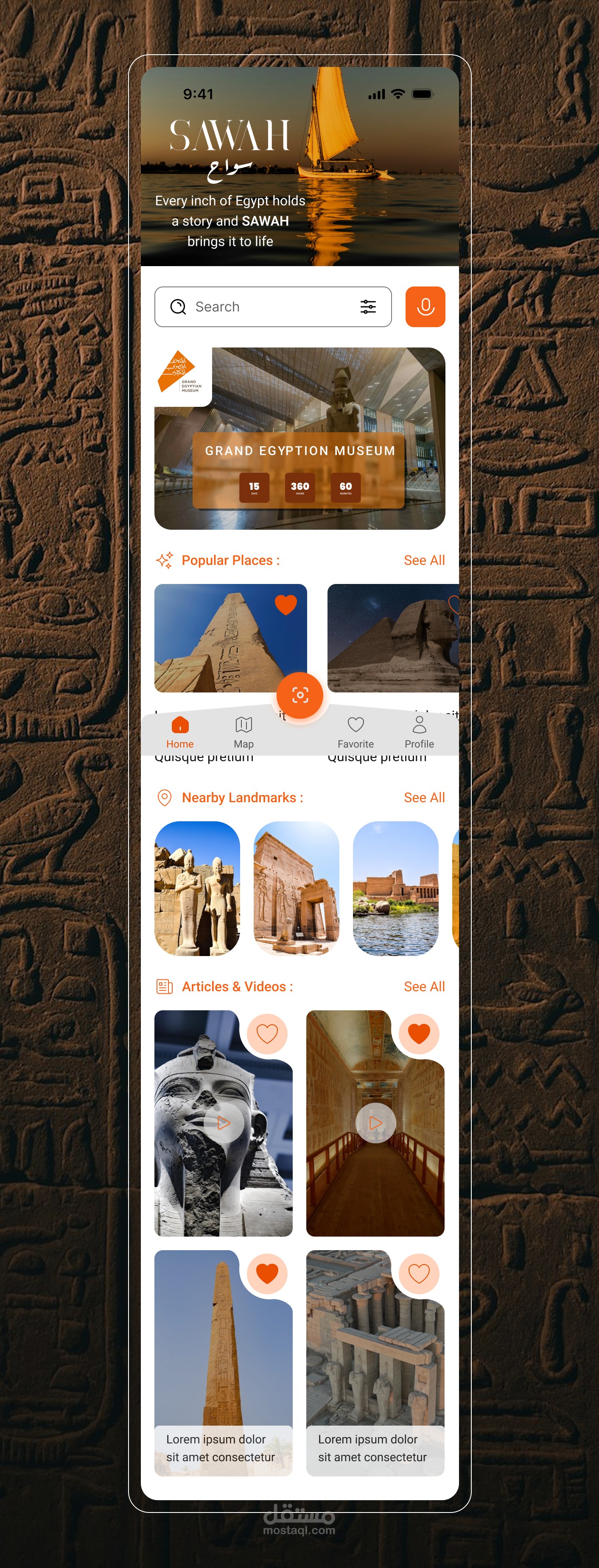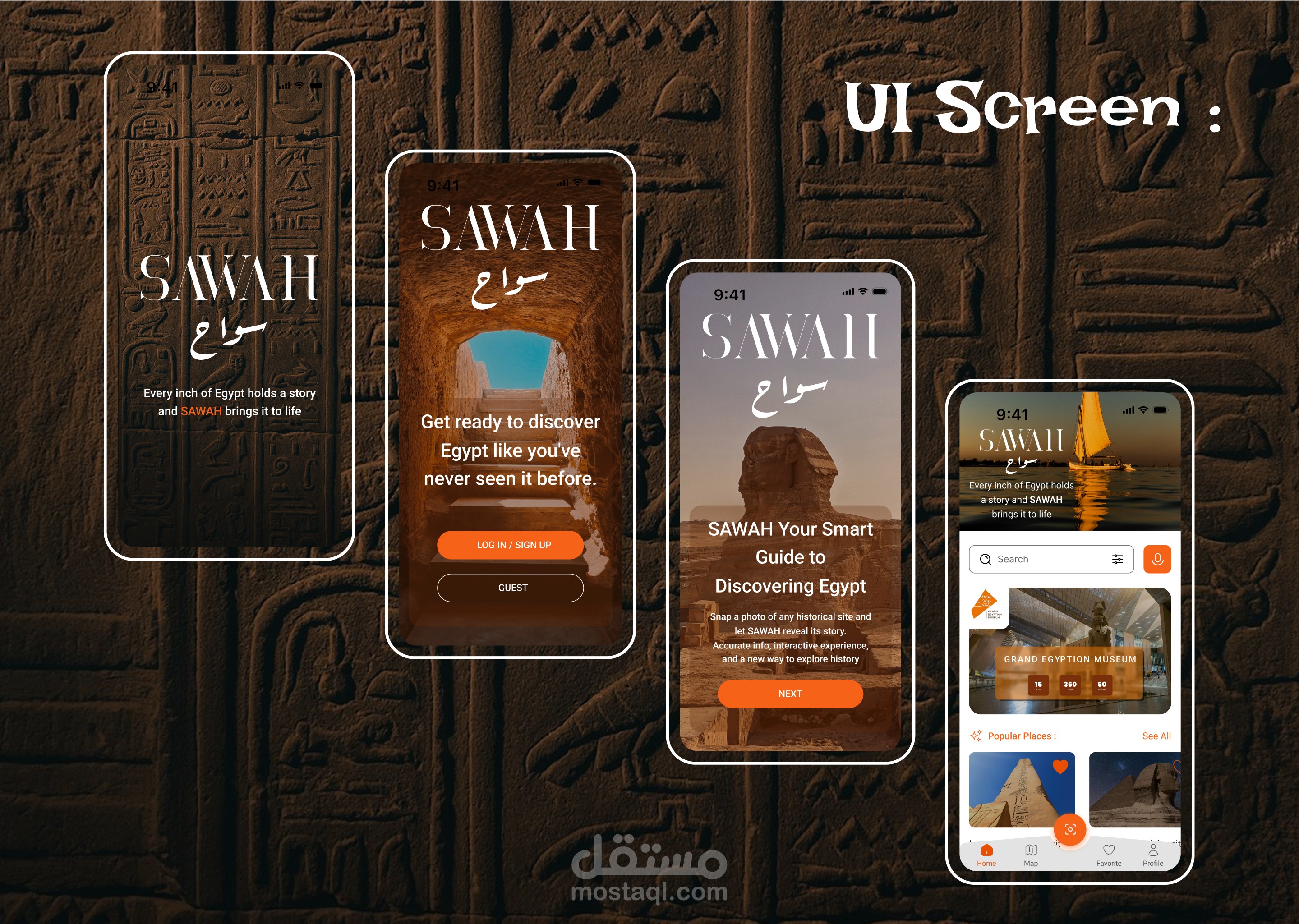 تصميم UI/UX - تطبيق يساعد السياح على استكشاف المعالم الأثرية والتاريخية في مصر بطريقة حديثة وتفاعلية - Sawah