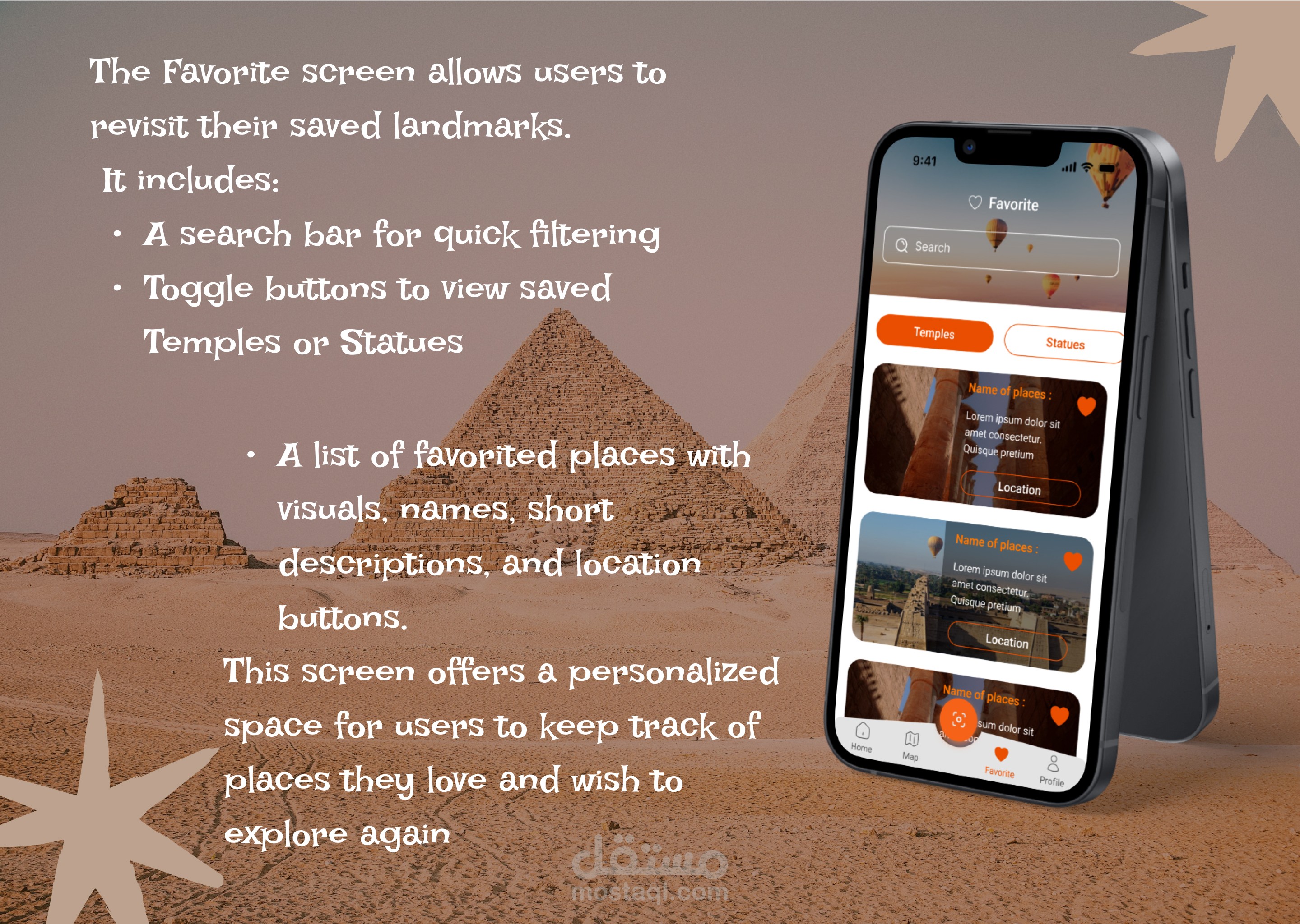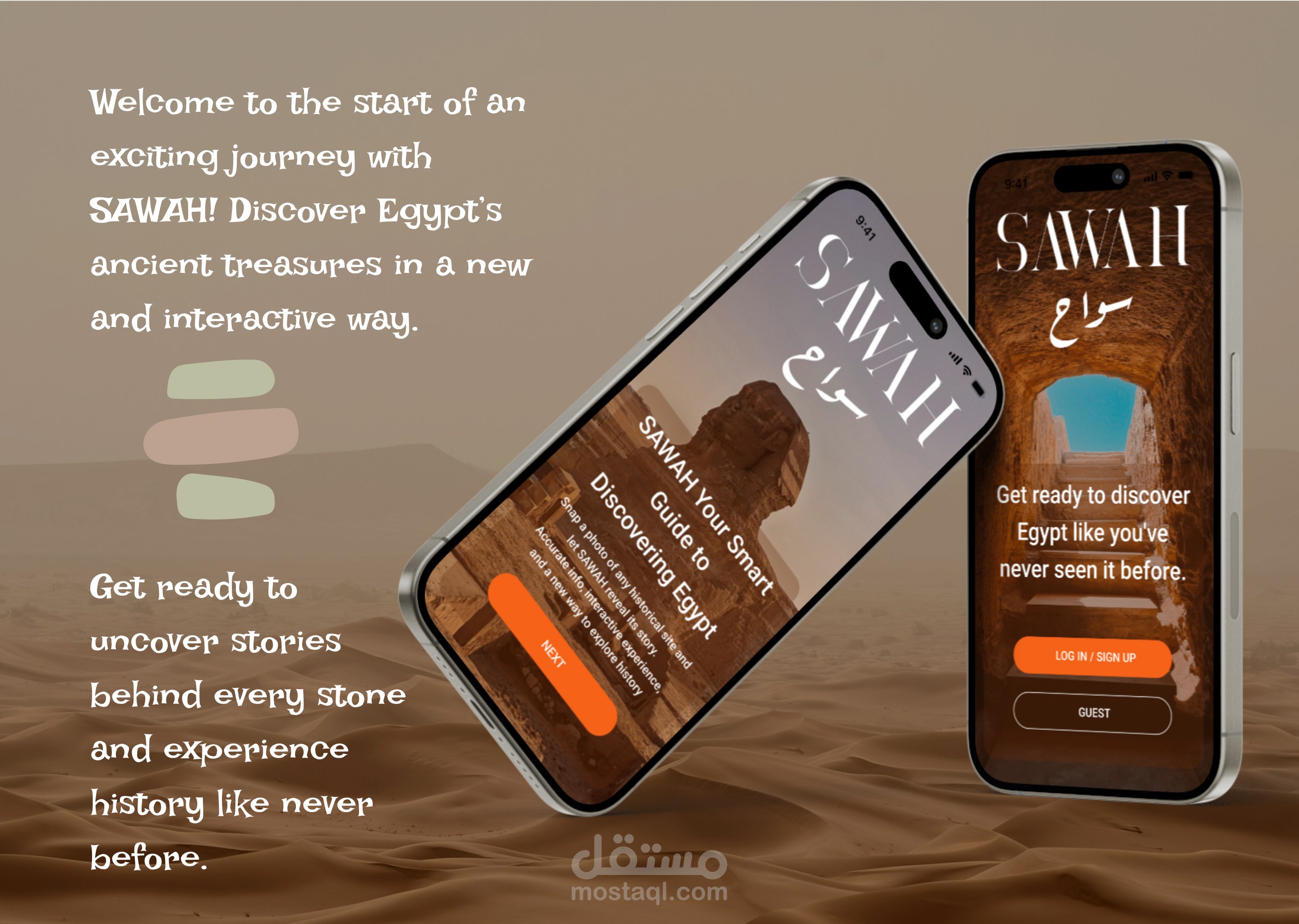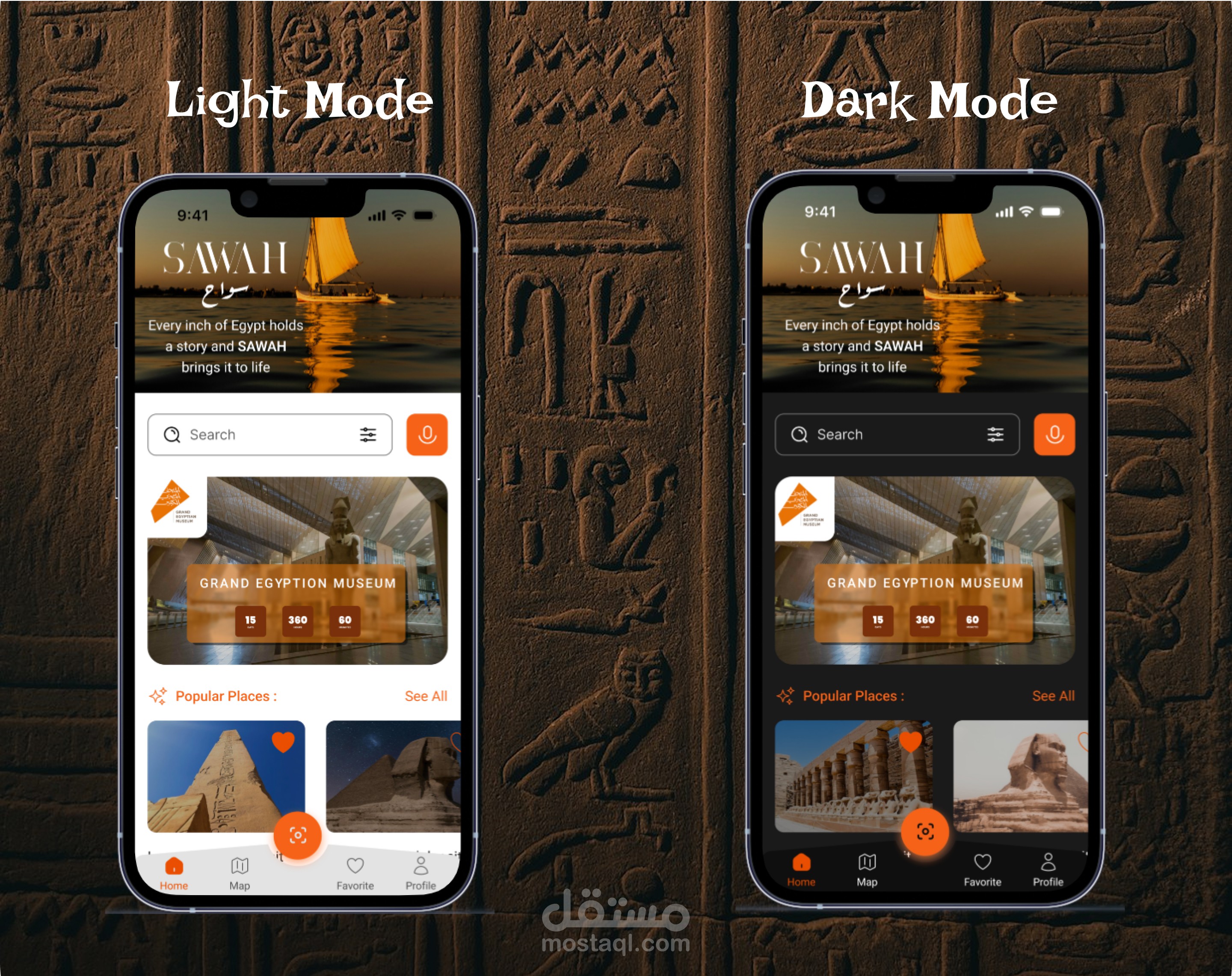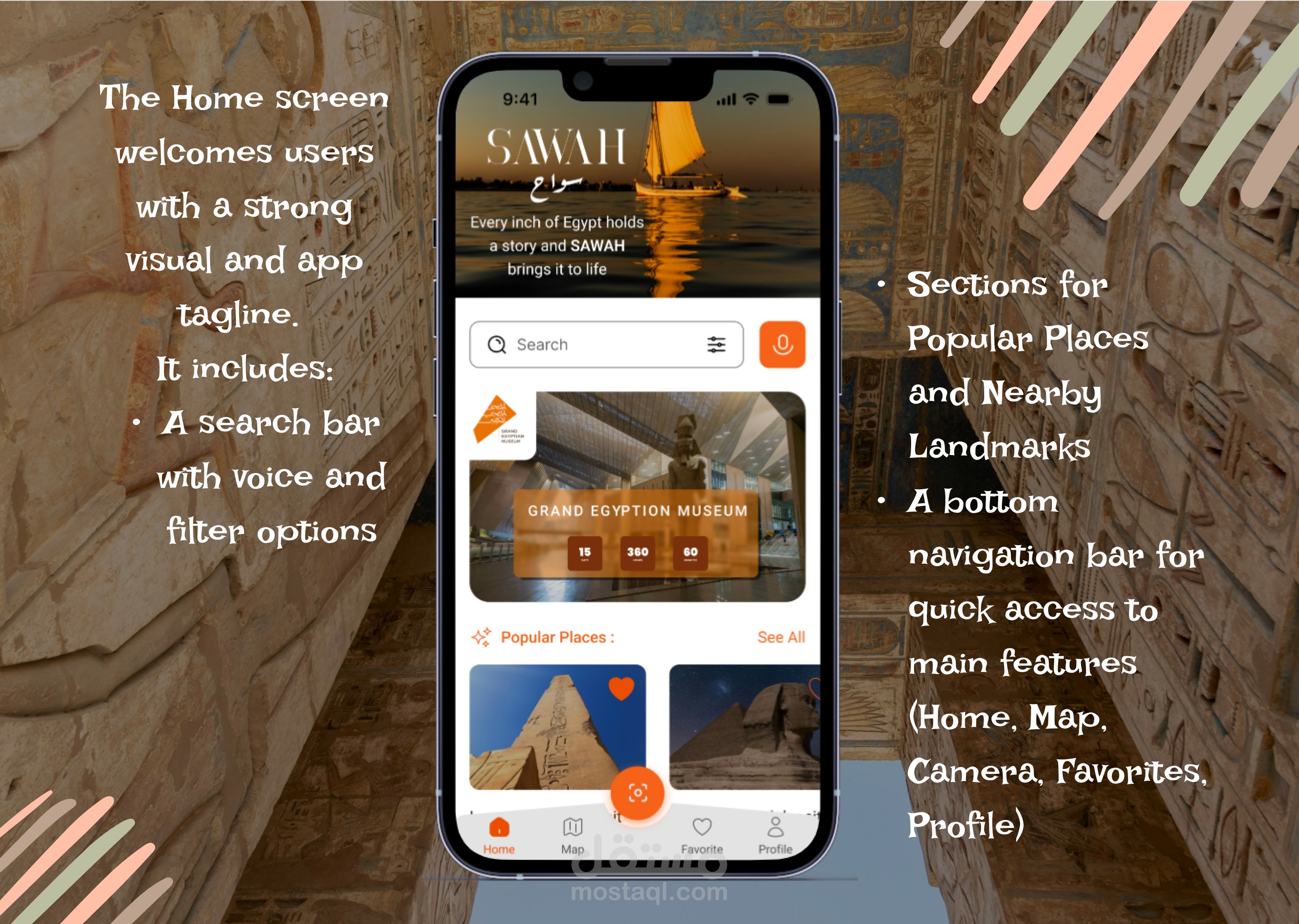 تصميم UI/UX - تطبيق يساعد السياح على استكشاف المعالم الأثرية والتاريخية في مصر بطريقة حديثة وتفاعلية - Sawah