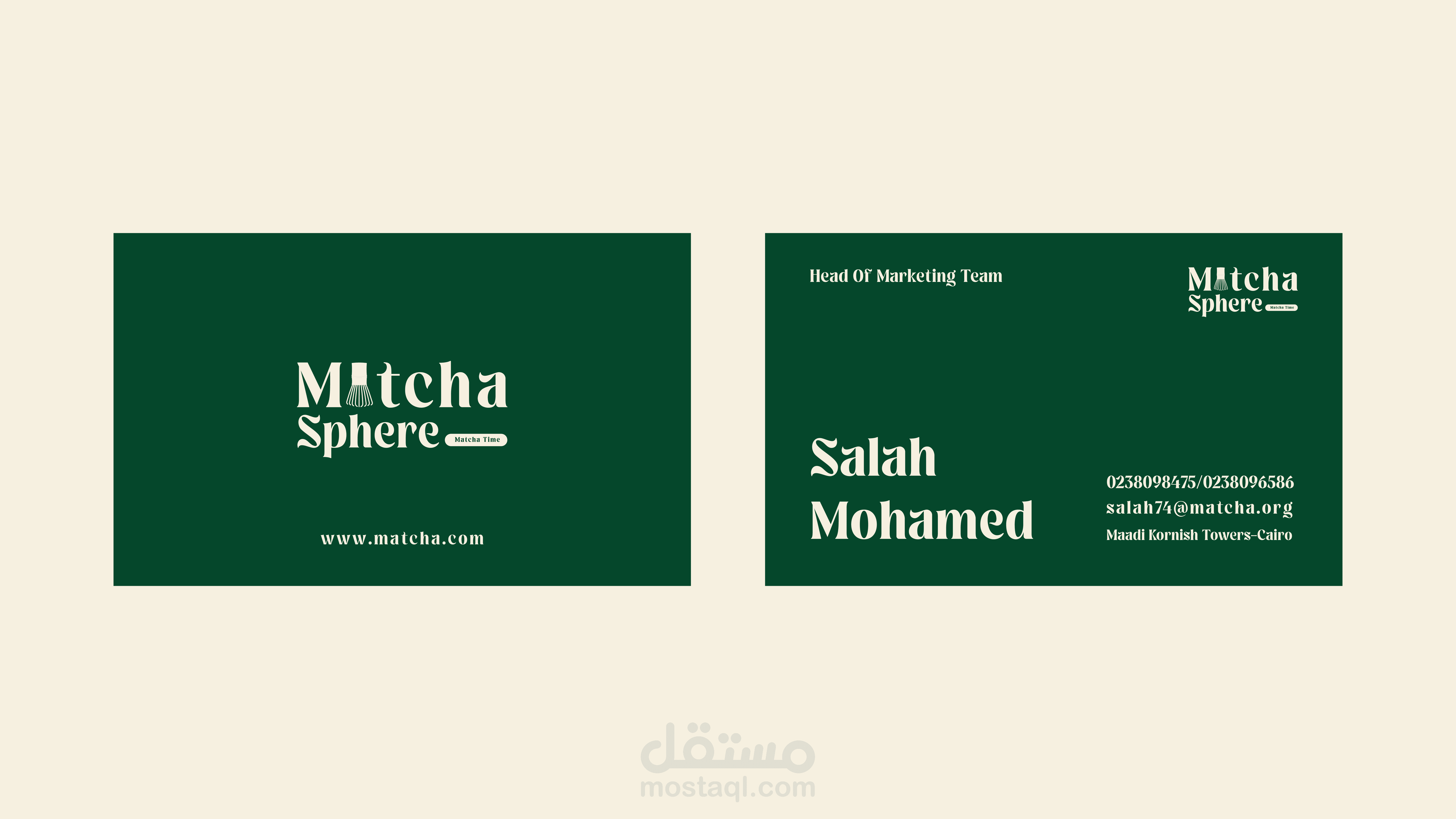 عملت تصميم هوية بصرية لبراند متخصص في الماتشا (Matcha). ركزت إن الهوية تعكس روح الماتشا المرتبطة بالطبيعة، الصفاء والطاقة.