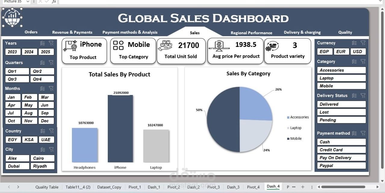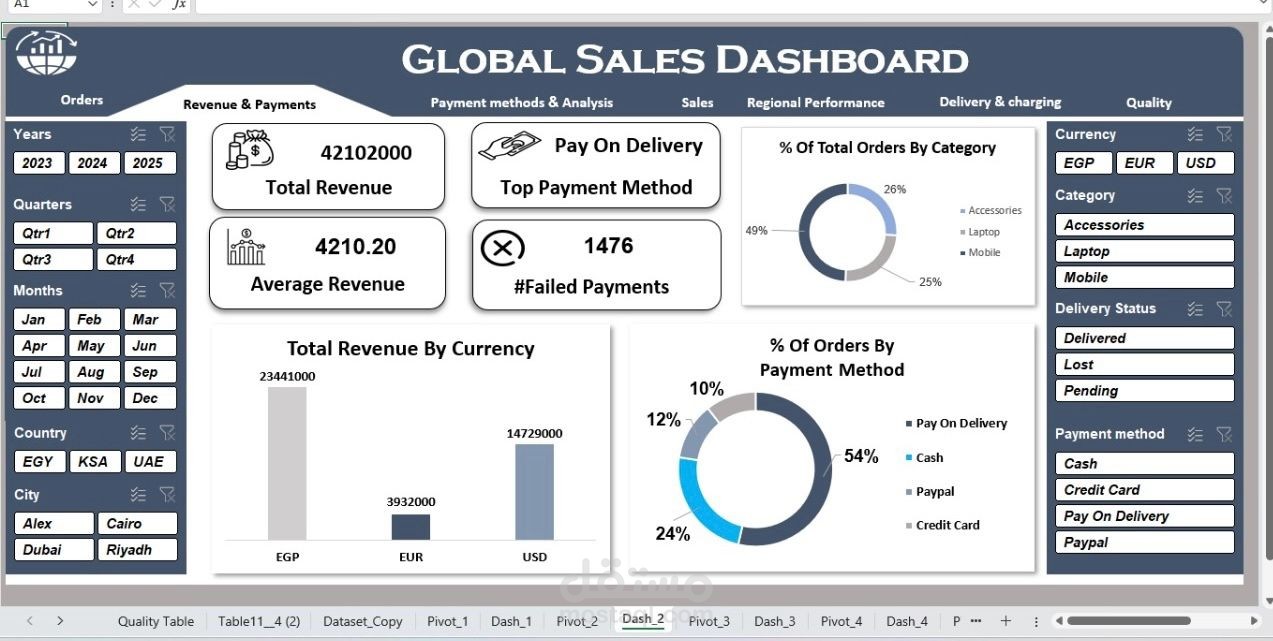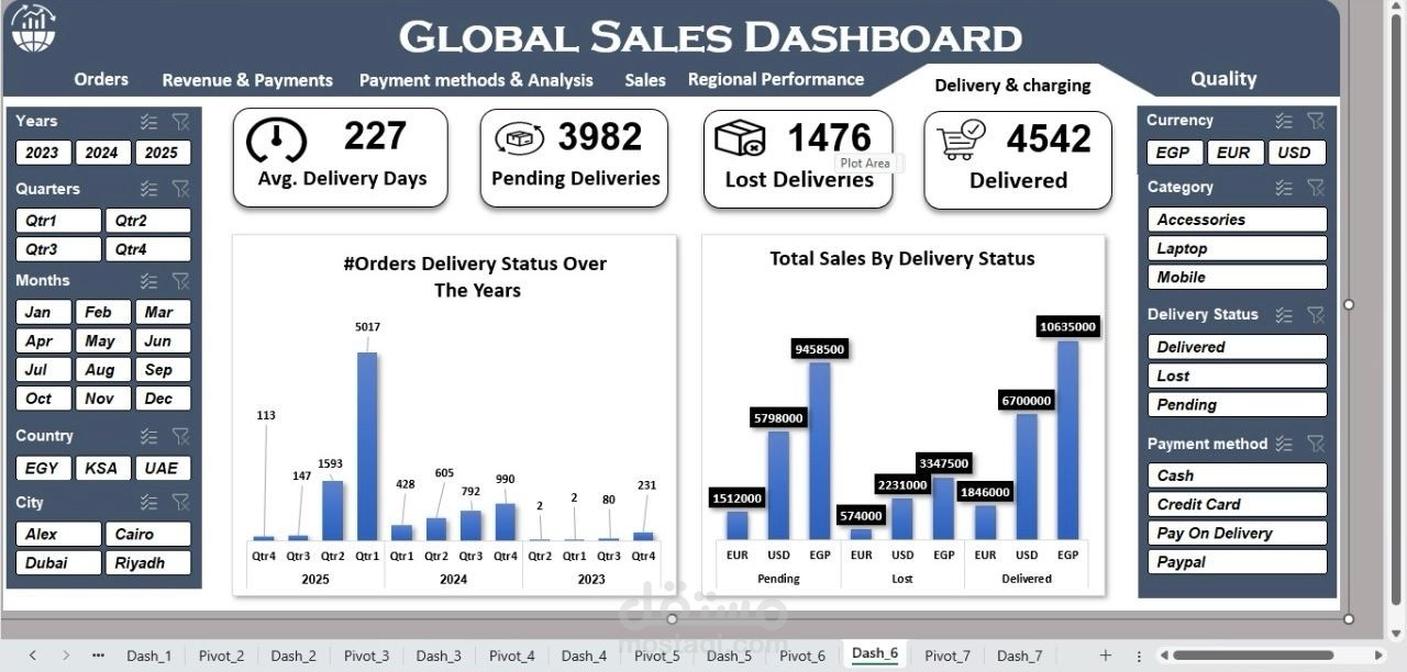 أقدم لك خدمة تحليل بيانات المبيعات وتصميم تقارير ولوحات تحكم احترافية باستخدام Microsoft Excel، لمساعدتك على فهم أداء المبيعات واتخاذ قرارات دقيقة بناءً على بيانات منظمة وواضحة.