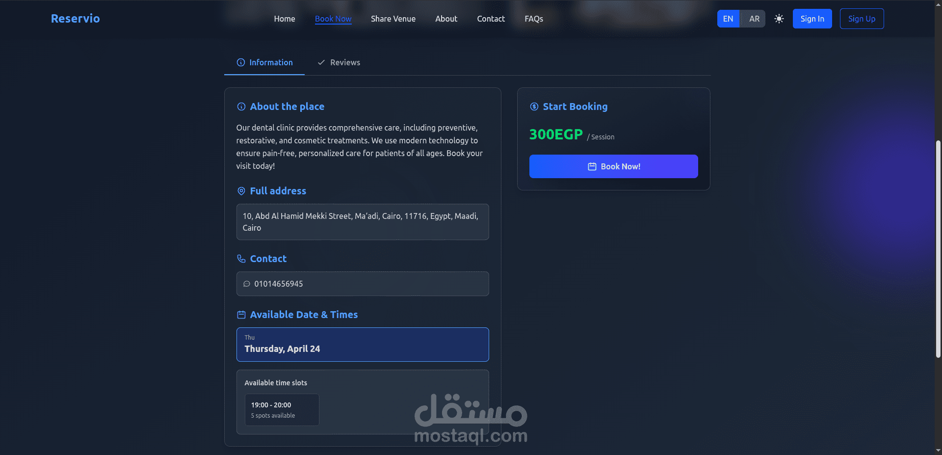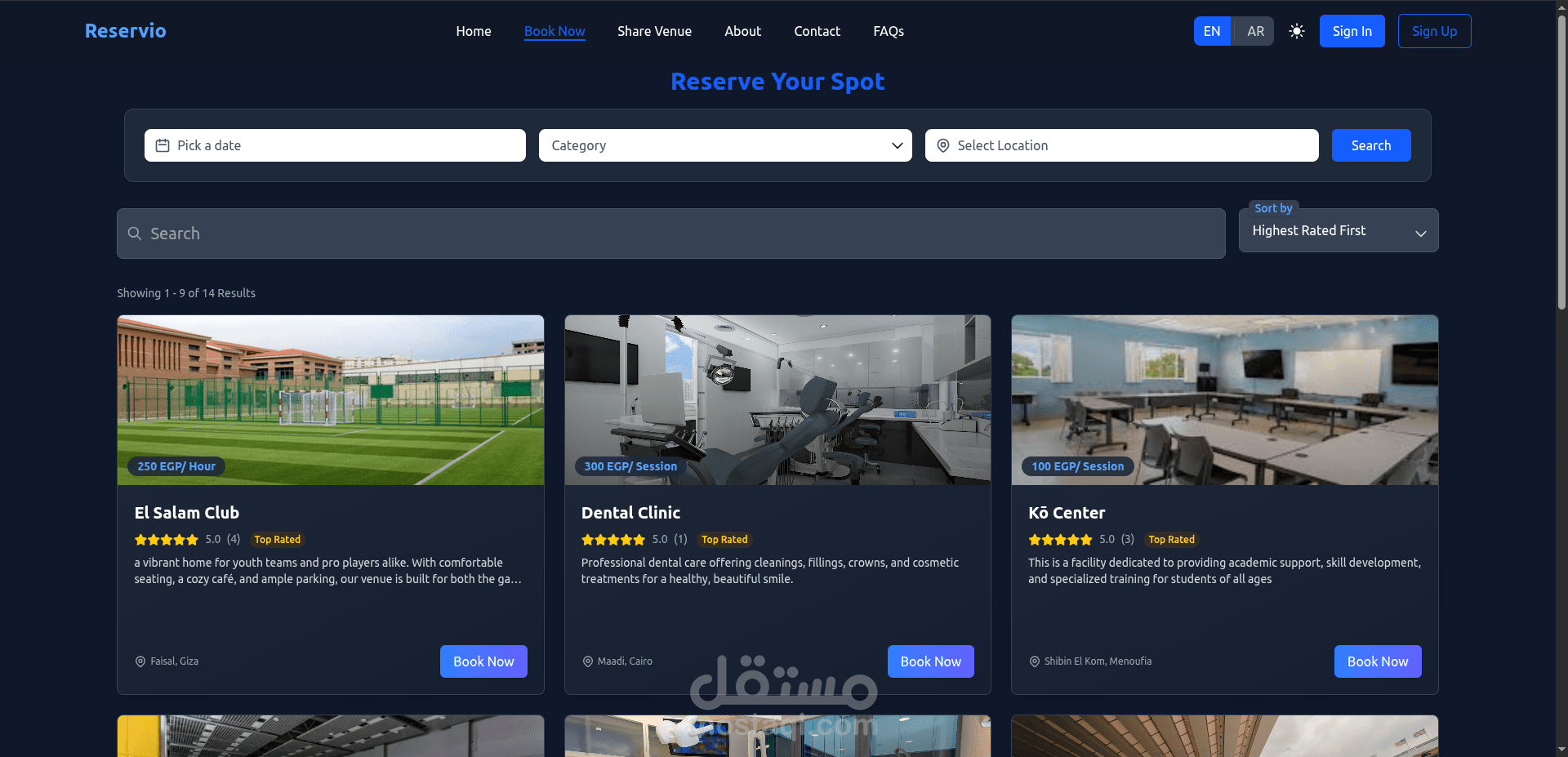 • Developed a full-stack booking platform connecting users with venue owners for fields, clinics, and learning centers.