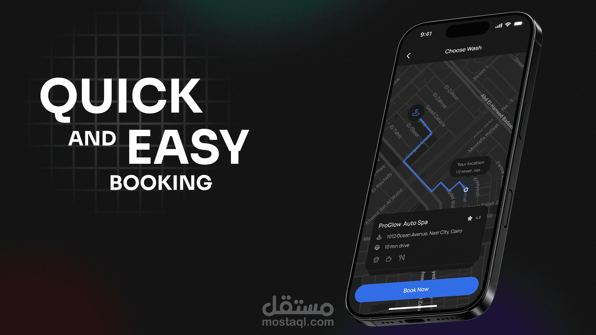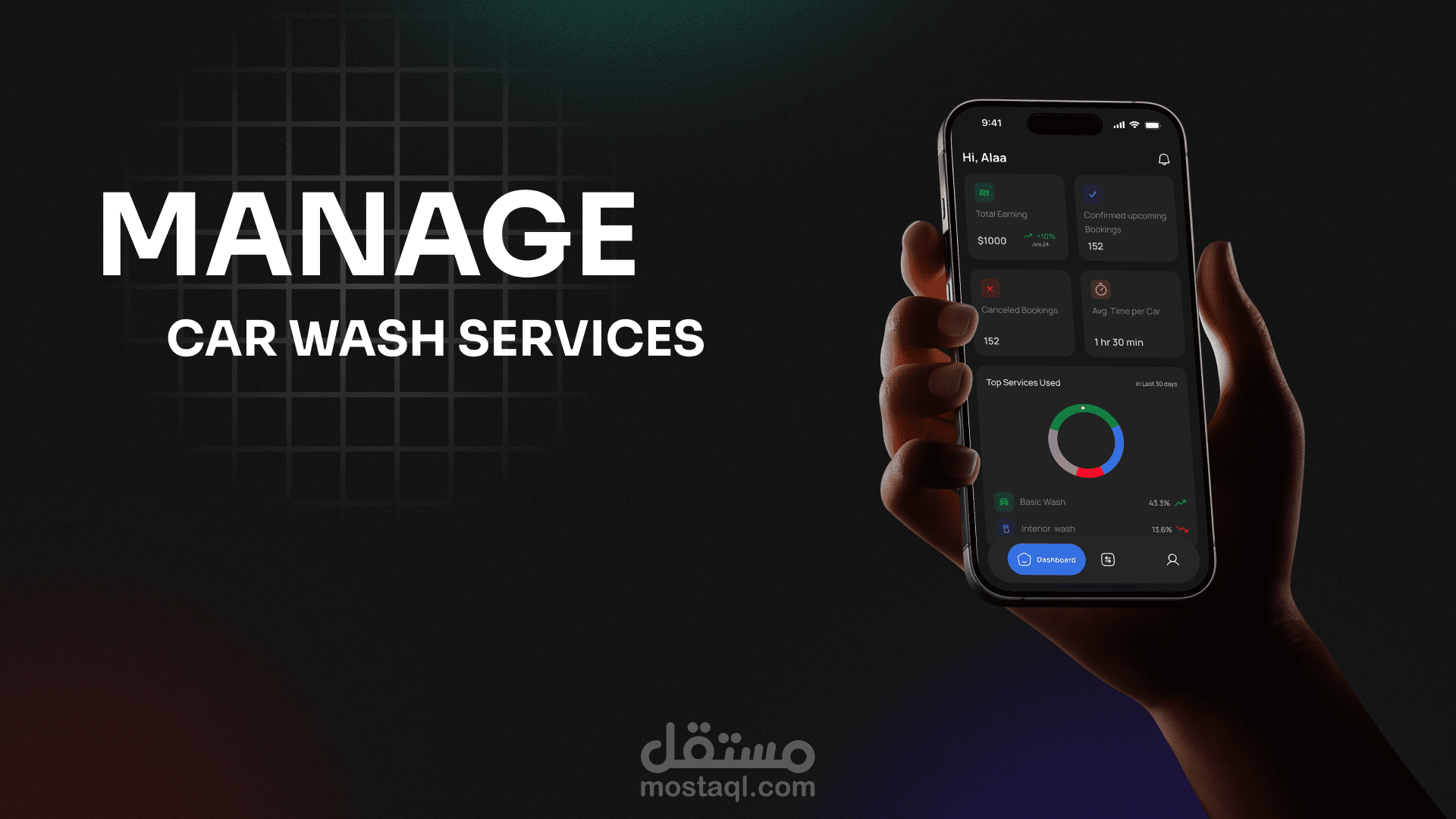 تصميم واجهة مستخدم لتطبيق غسيل سيارات