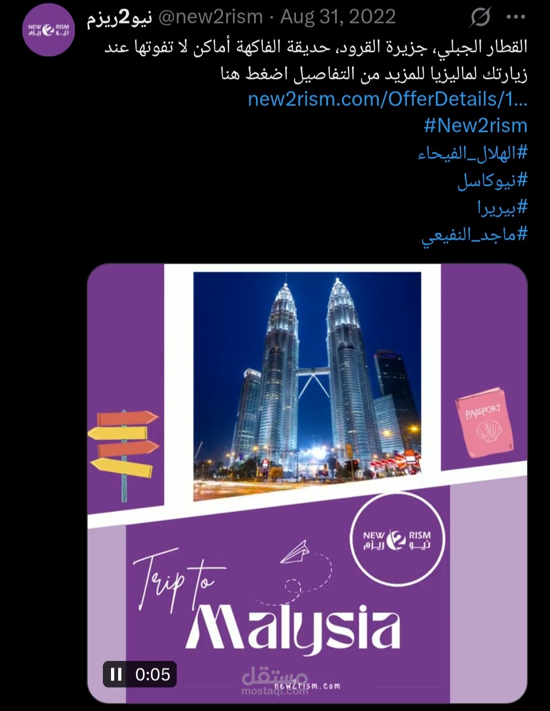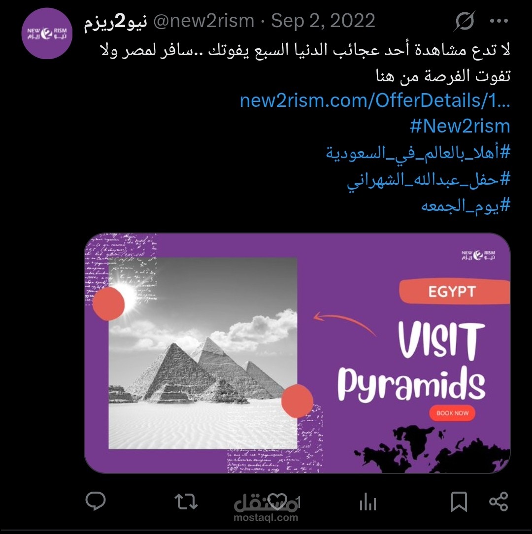 كنت مسؤول عن إدارة وصياغة المحتوى الإبداعي الخاص بحساب شركة سياحية سعودية على منصة X، بحيث أقدم محتوى يجذب العملاء ويحفزهم على التفاعل والحجز.