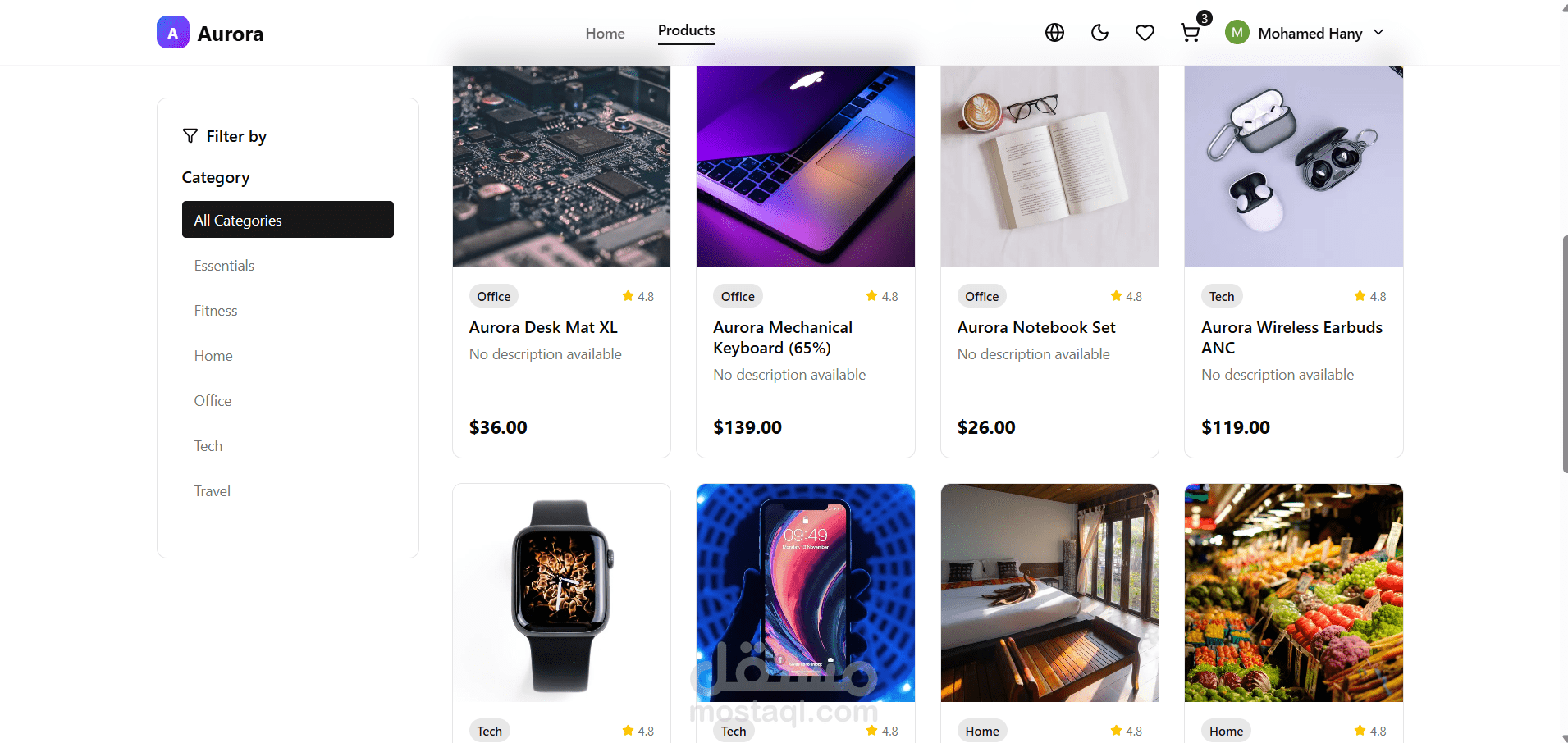 - إدارة الحالة والتصفية/الفرز والبحث الفوري عن المنتجات.