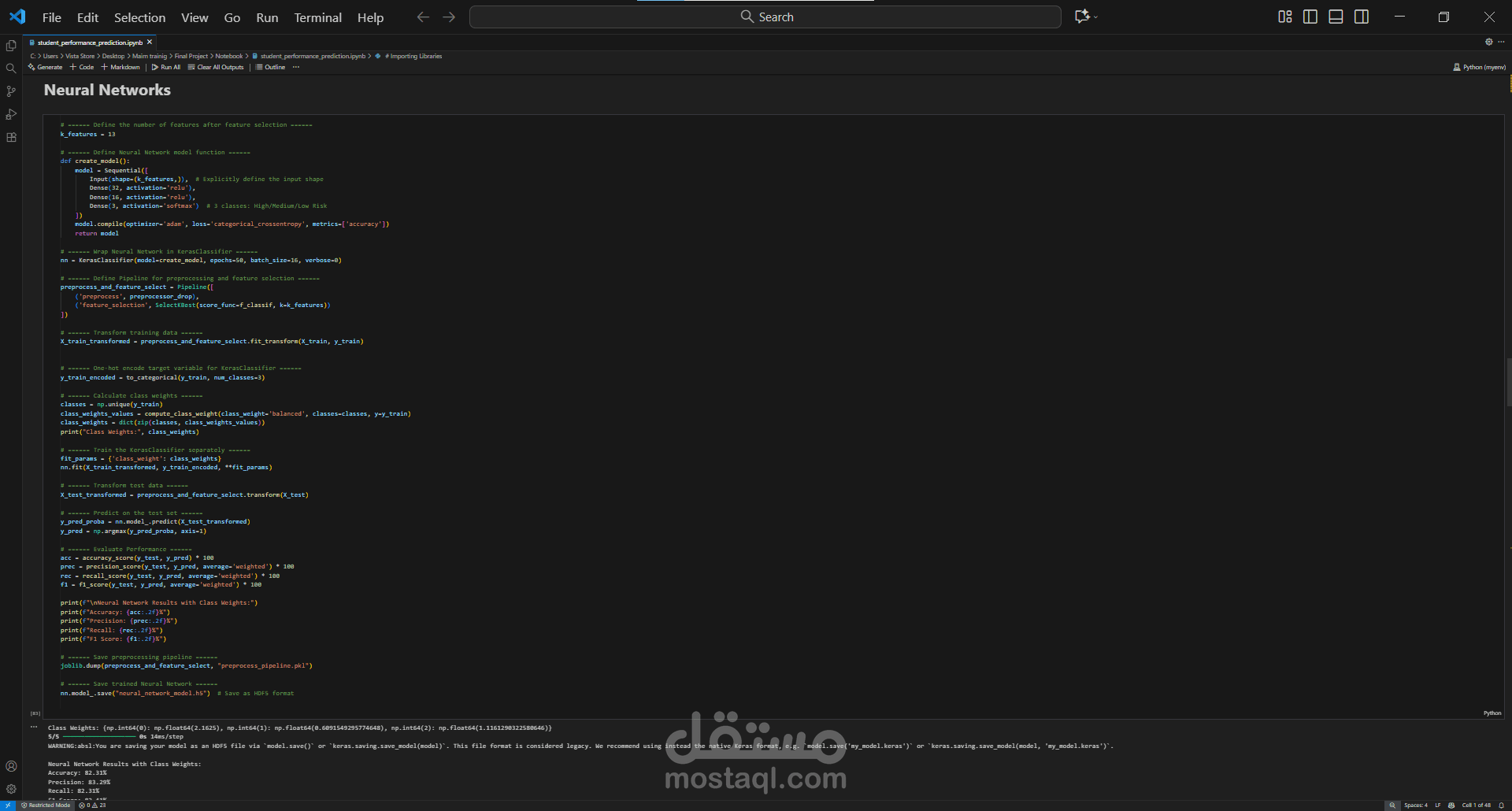 قمت بتطوير نموذج للتنبؤ بمستوى أداء الطلاب (منخفض – متوسط – مرتفع) اعتمادًا على البيانات الديموغرافية والاجتماعية ودرجاتهم السابقة.