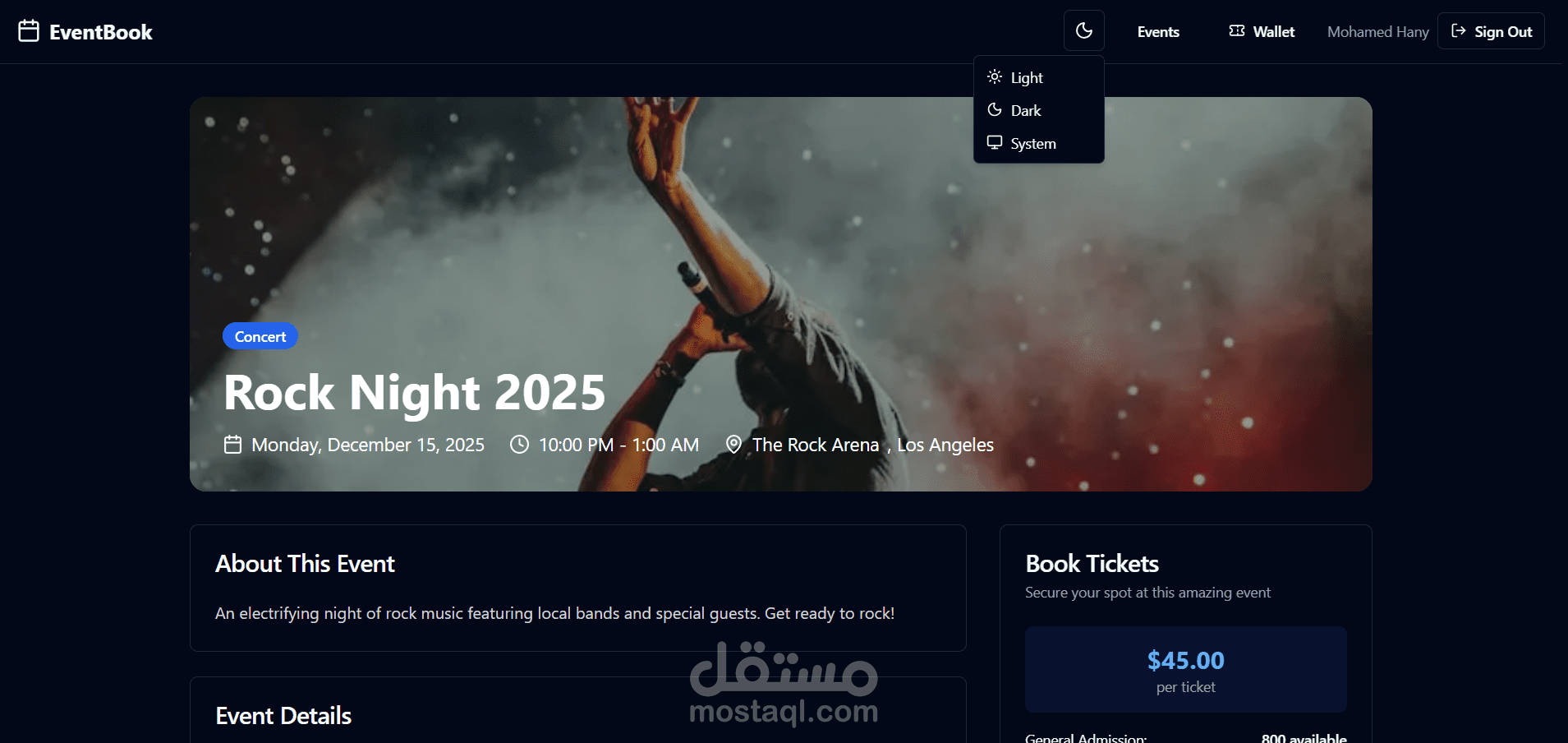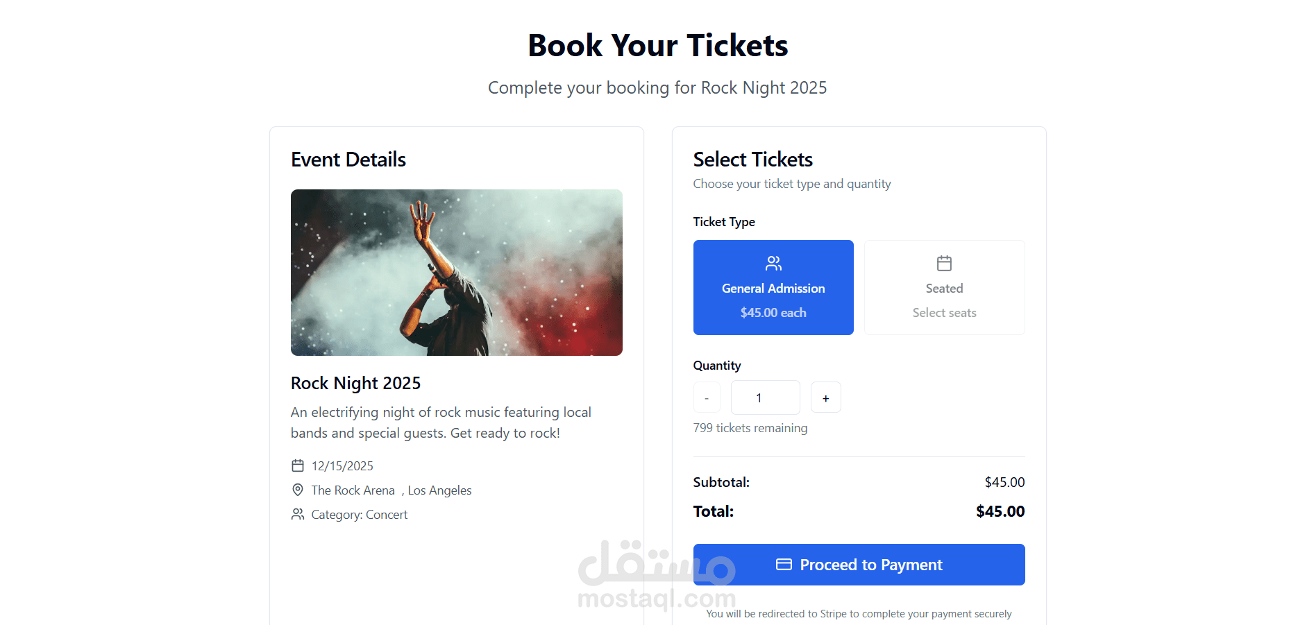 - Webhooks لتأكيد الدفع، إصدار/إلغاء التذاكر، وإرسال بريد التأكيد مع QR.