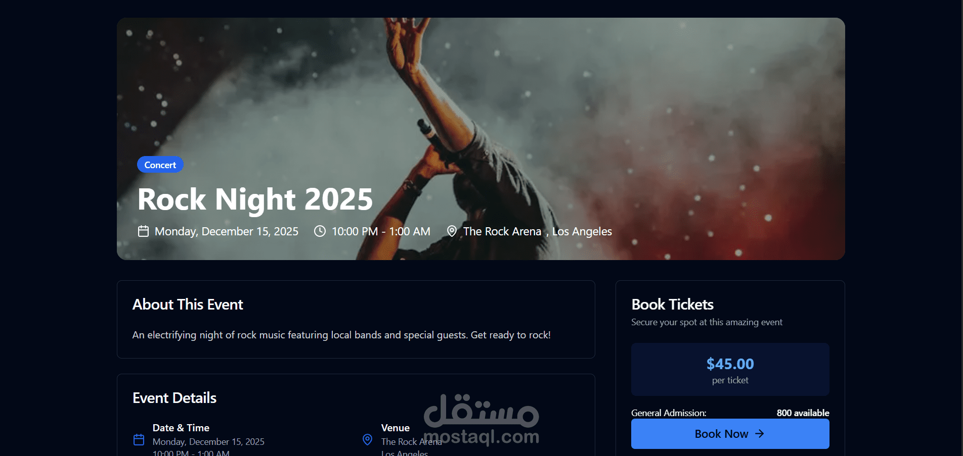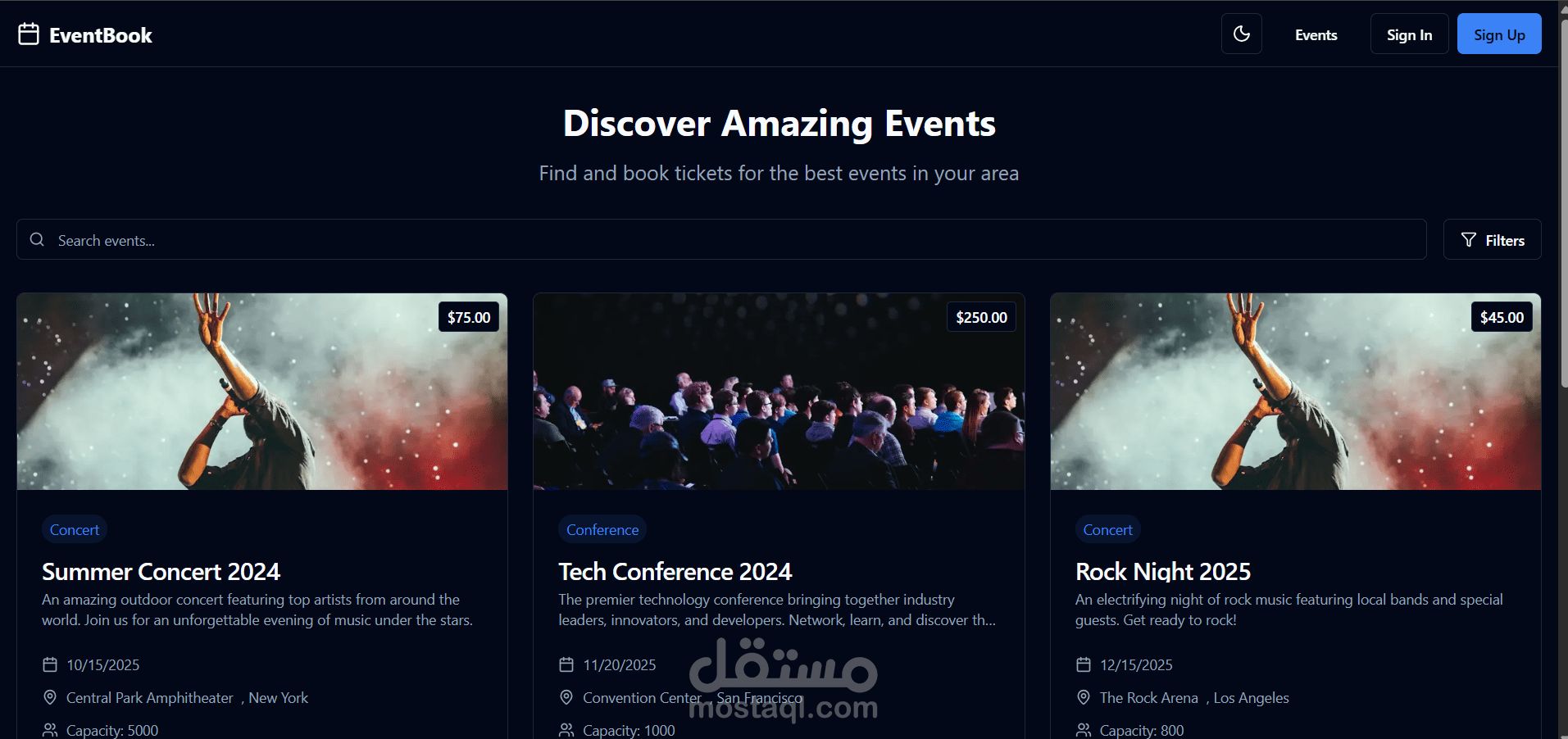 -تصفية وبحث فوري حسب التاريخ/الموقع/التصنيف، مع صفحات تفاصيل الحدث (الوصف، المتحدثون، الخريطة).