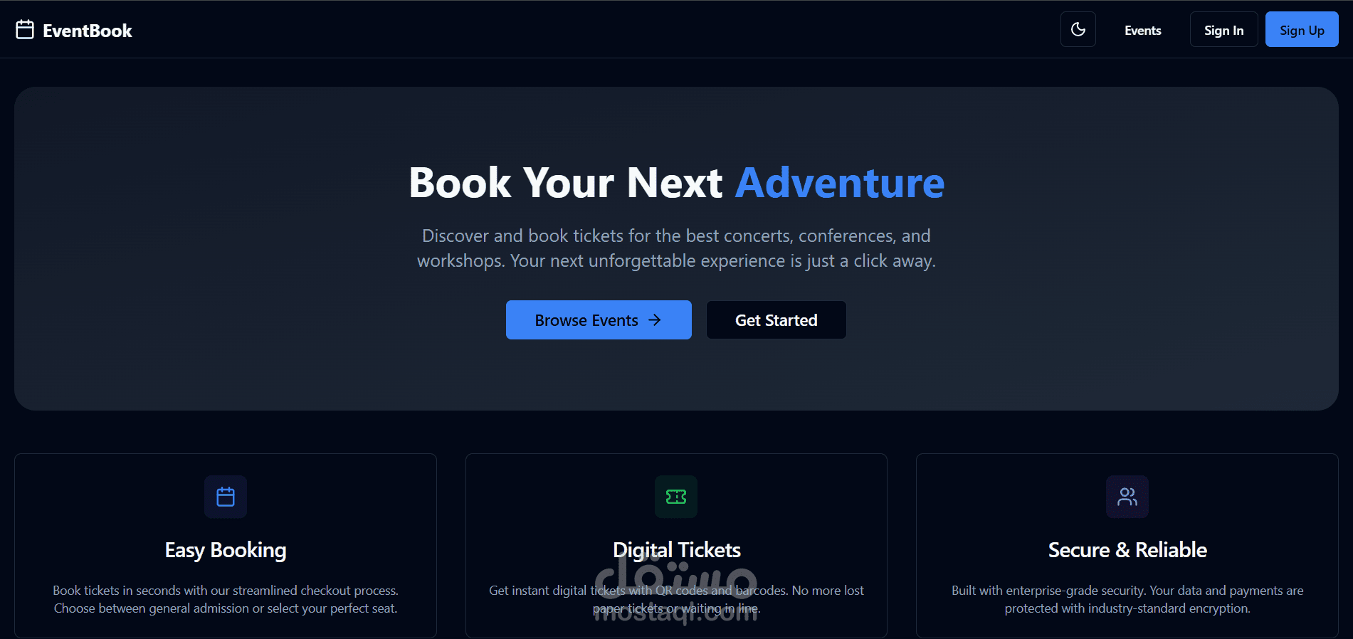 -حجز تذاكر بسير واضح: اختيار فئة التذكرة → إدخال البيانات → الدفع → تأكيد فوري.