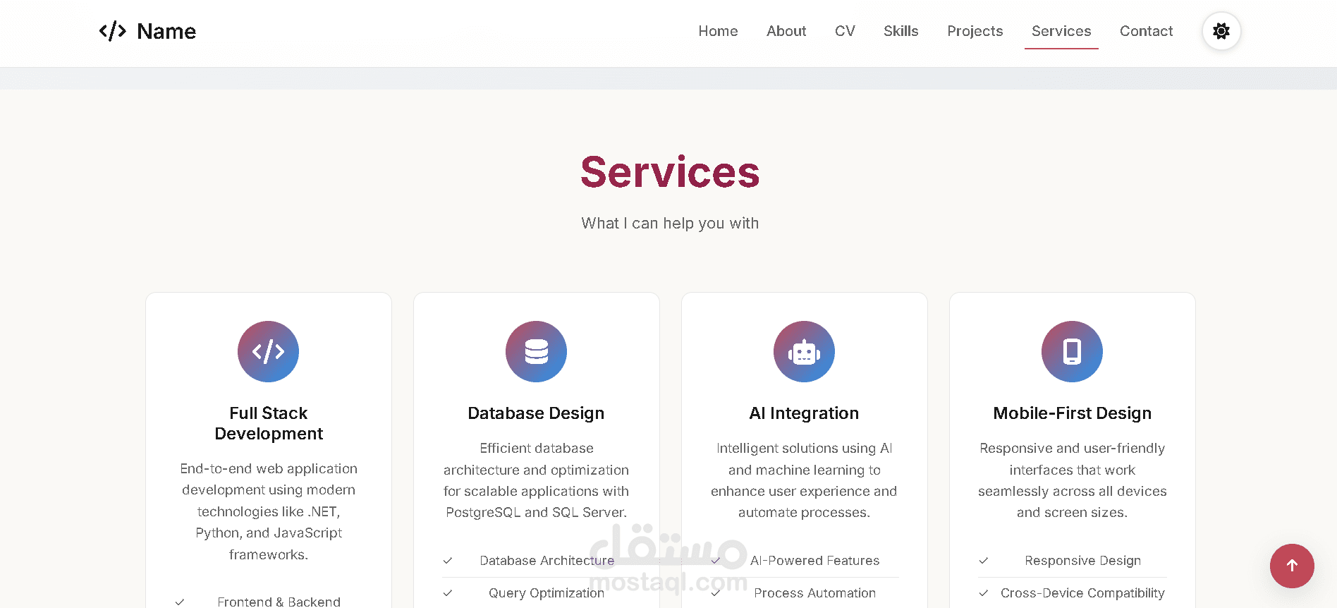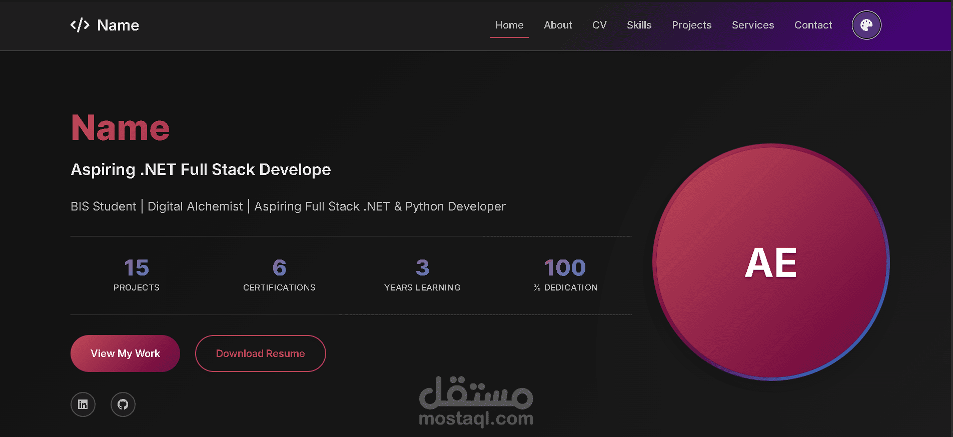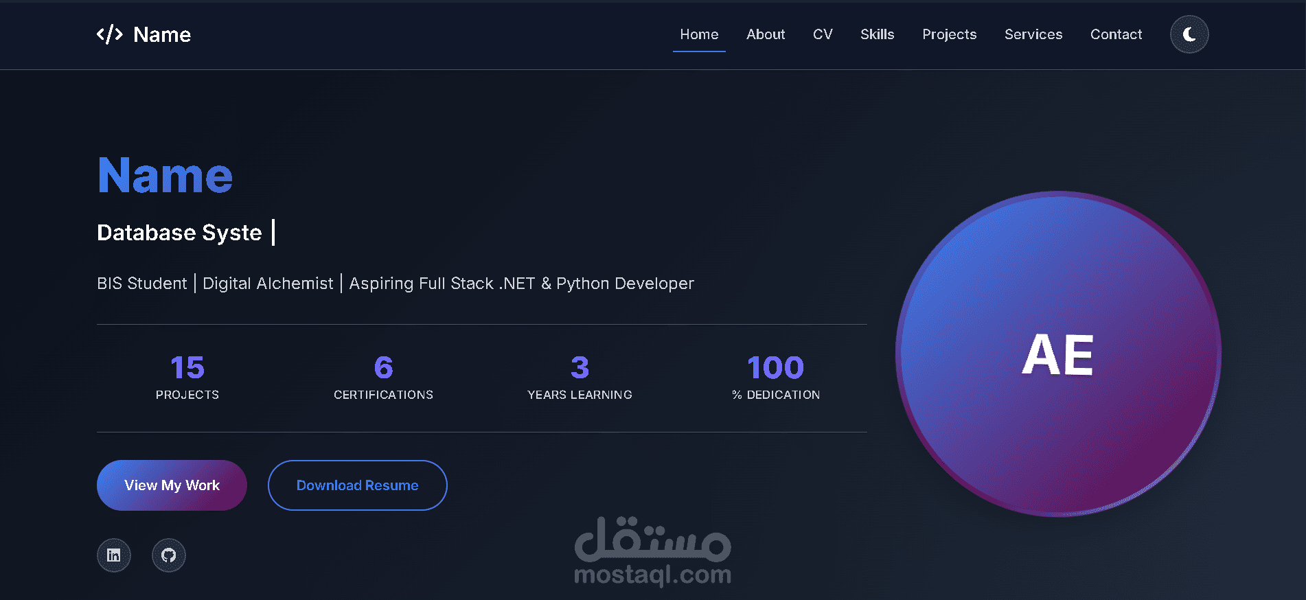 تركز عملي على تصميم الواجهة (Front-End) بشكل احترافي ومتجاوب ليعكس الهوية الشخصية بشكل واضح.