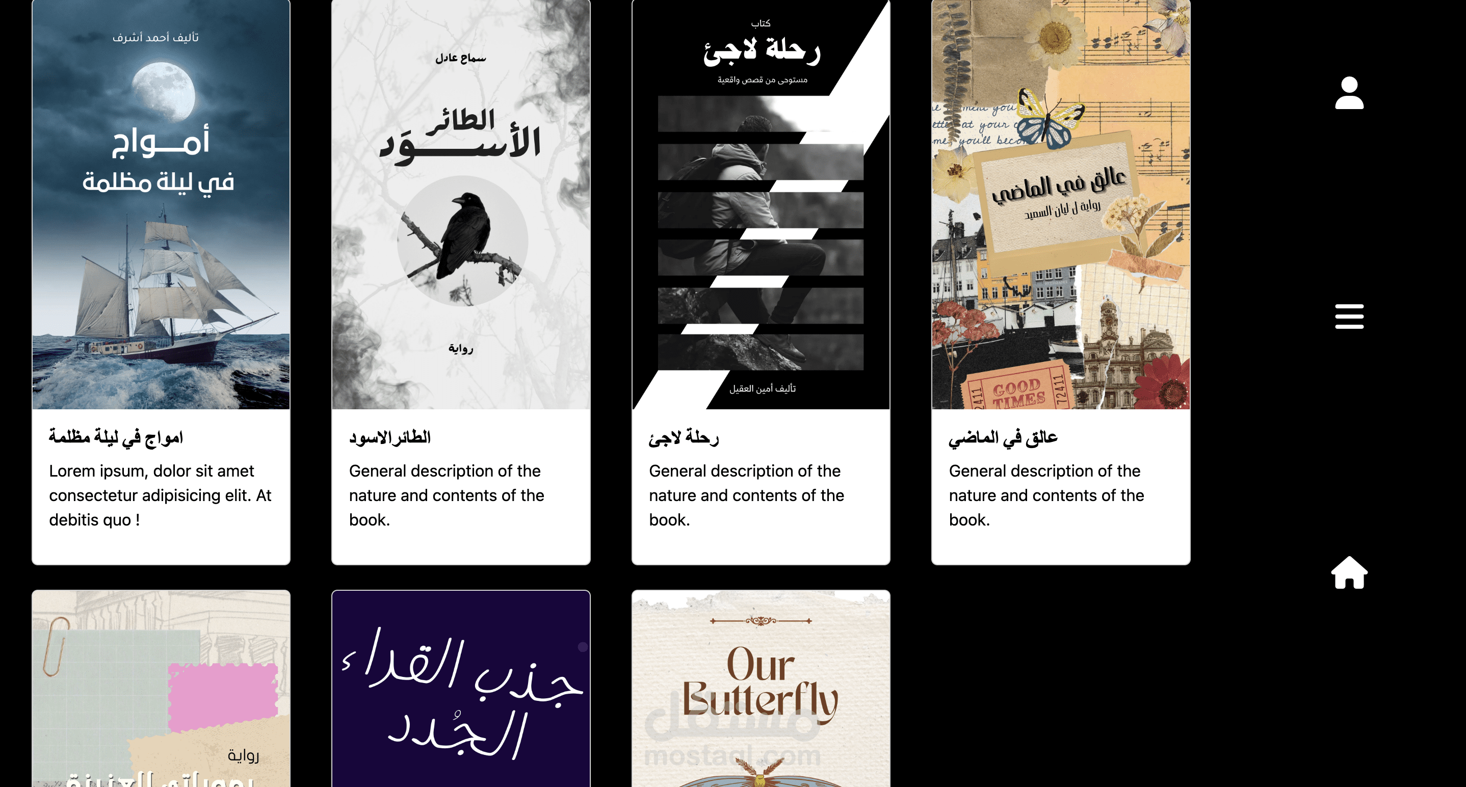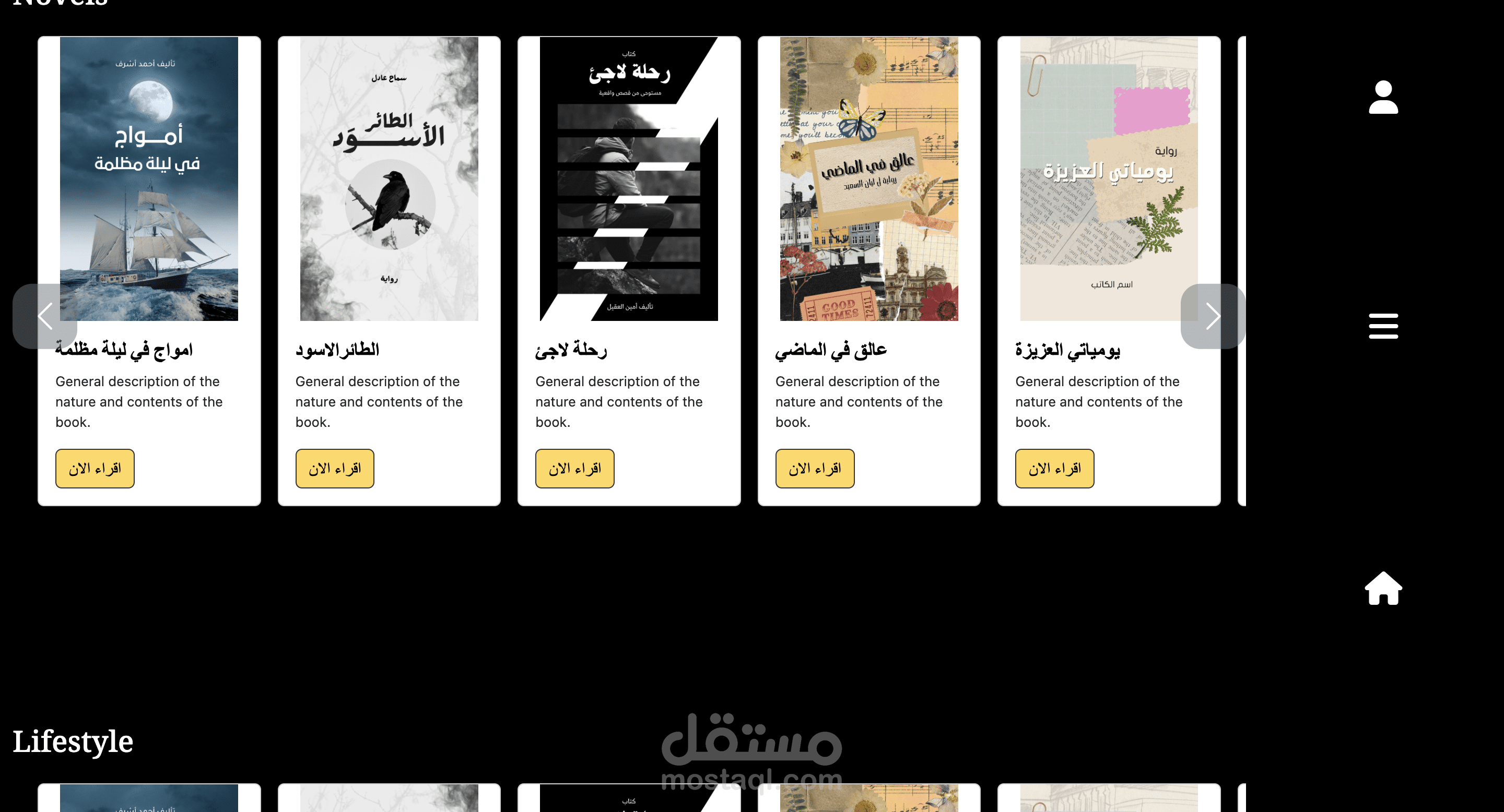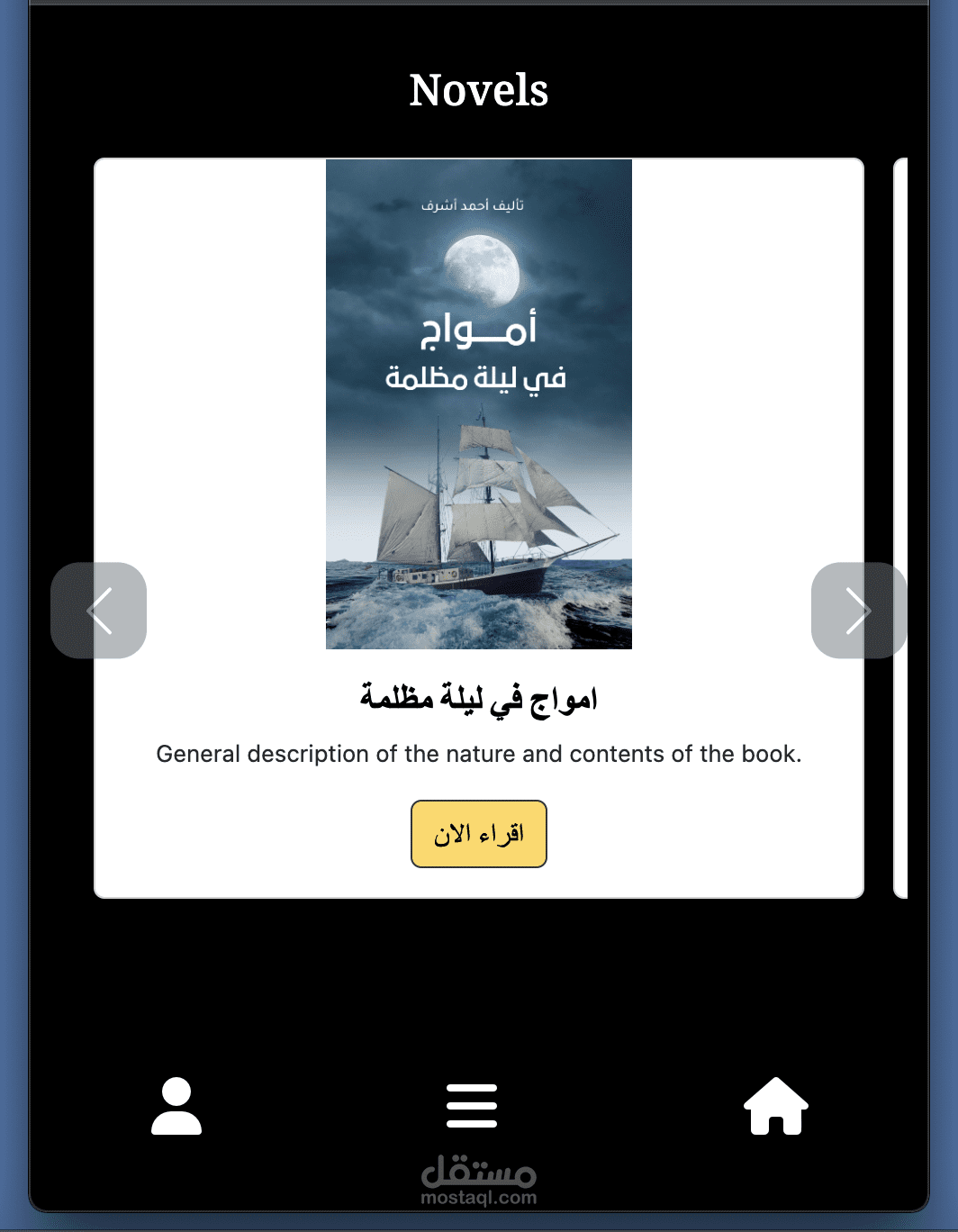 نسخة تجريبية لموقع ويب يسهّل على القارئ تصفح مكتبته الرقمية. يتكوّن من ثلاث شاشات رئيسية: