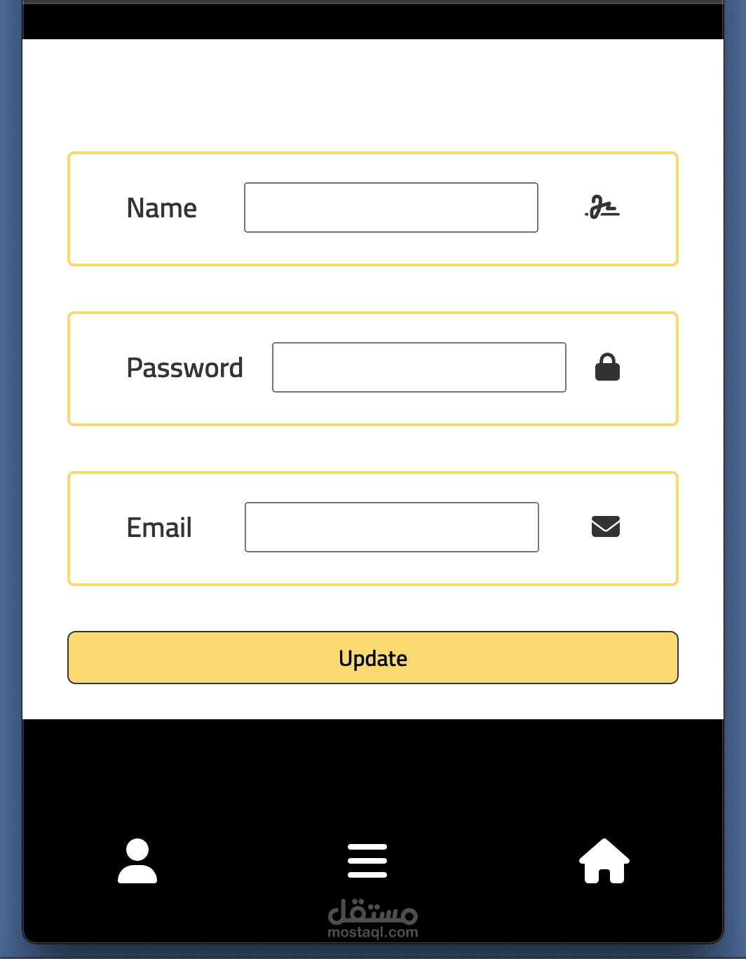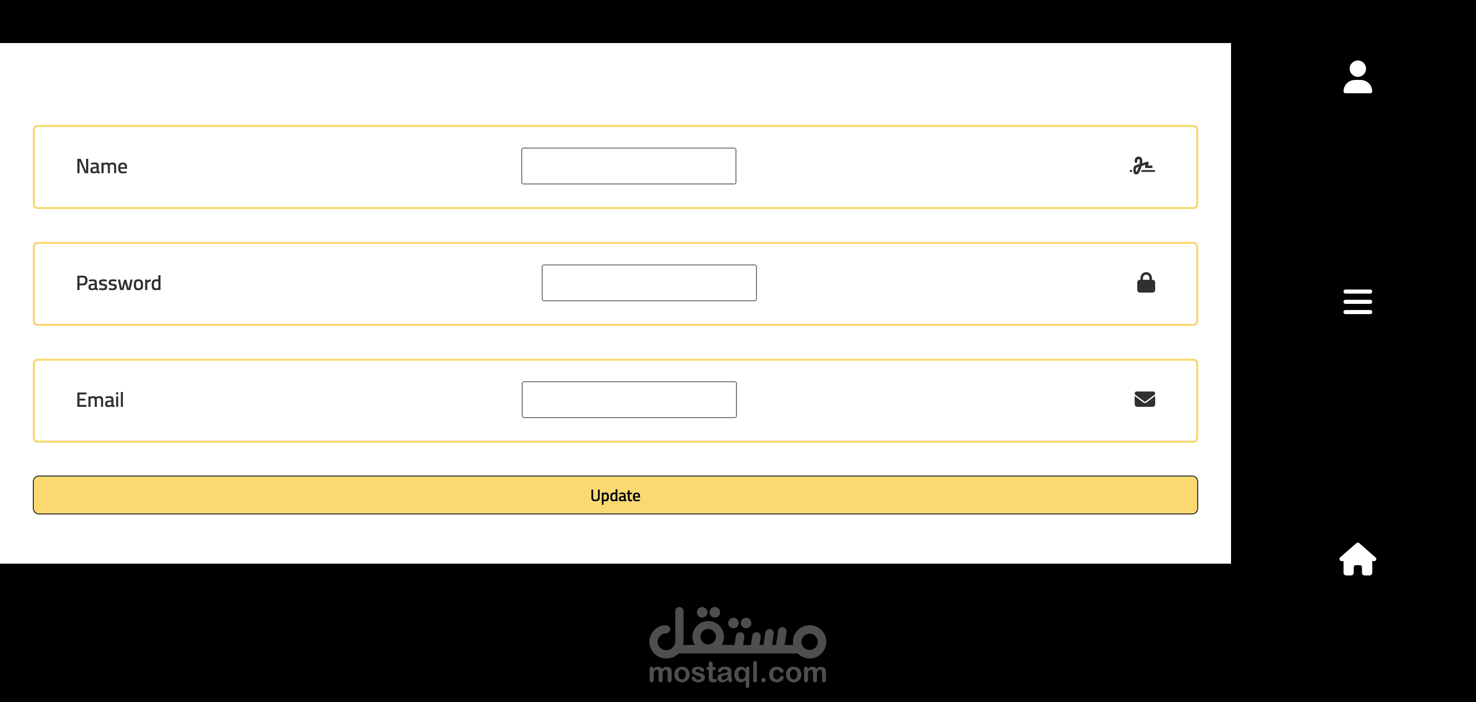 الملف الشخصي: تعديل الاسم، البريد الإلكتروني، وكلمة المرور.