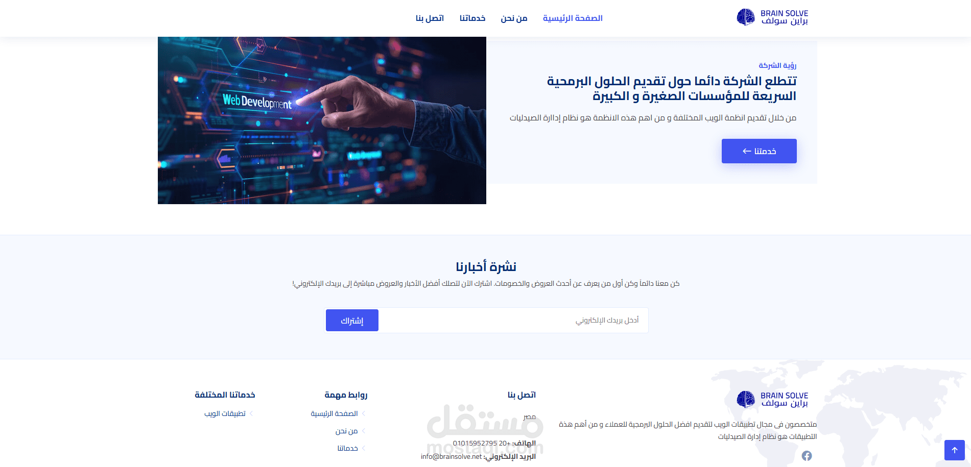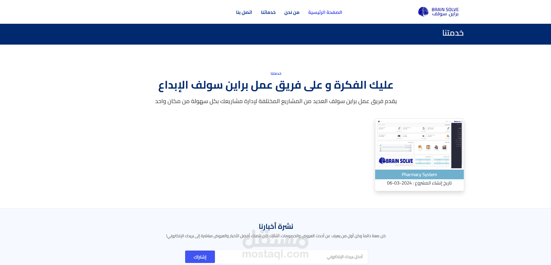 الموقع تم تنفيذه باستخدام PHP / Laravel وقاعدة بيانات MySQL، وبيعرض كل الخدمات اللي الشركة بتقدمها زي: