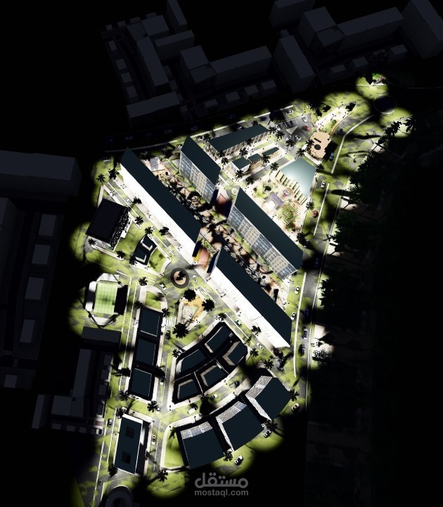 •دمج مبانٍ للخدمات (ثقافية، تجارية، ترفيهية) تدعم الحياة اليومية للسكان والزائرين.