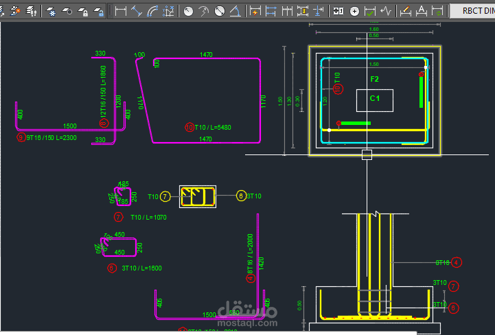 إعداد لوحة تنفيذية (Shop Drawing) متكاملة لتفاصيل التسليح والقطاعات الإنشائية، تشمل الأساسات والأعمدة والجداول الخاصة بالحديد. تم العمل باستخدام AutoCAD Structural Detailing مع مراعاة أدق التفاصيل التصميمية، وإخراج اللوحة بشكل منظم يسهل اعتمادها من الاستشاري وتنفيذها بالموقع.