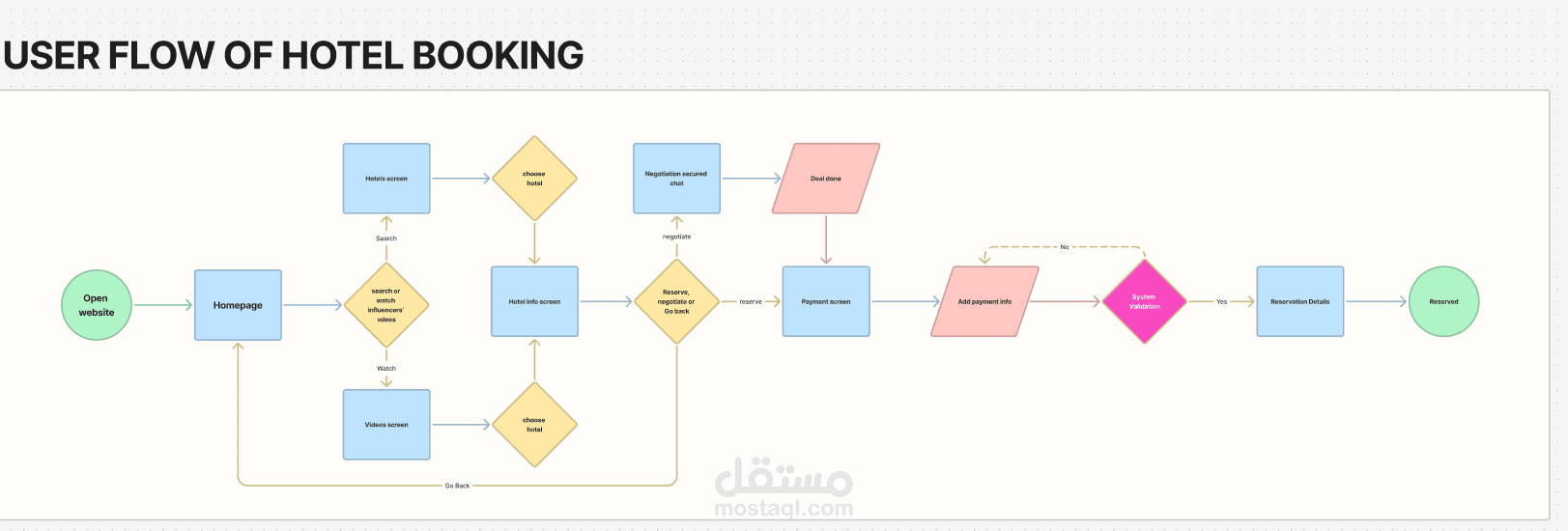 User flow, Competitor analysis and user persona for an hotel booking website
