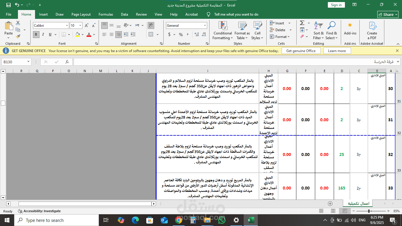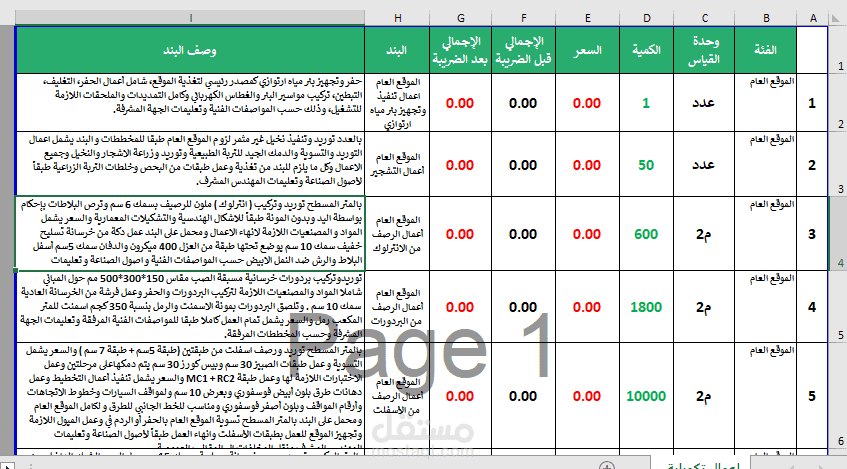 إعداد جدول كميات تفصيلي (Bill of Quantities) لمشروع إنشائي، يشمل البنود الأساسية مثل أعمال الحفر والخرسانة والتسليح والمباني. تم استخدام Excel لتنظيم البنود بالوحدات والكميات والأسعار التقديرية، مع تطبيق معادلات لحصر الكميات بدقة وتقليل نسبة الأخطاء.