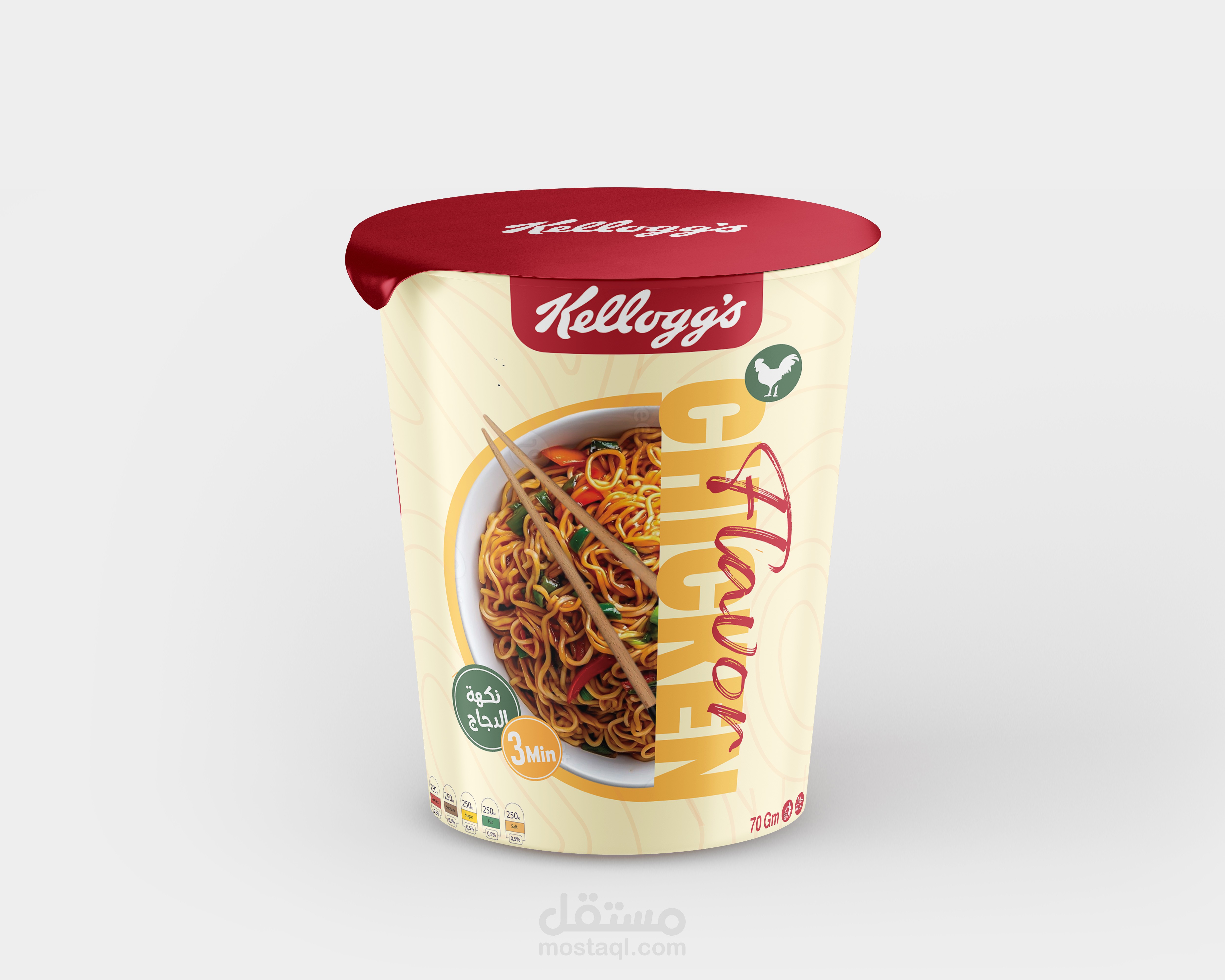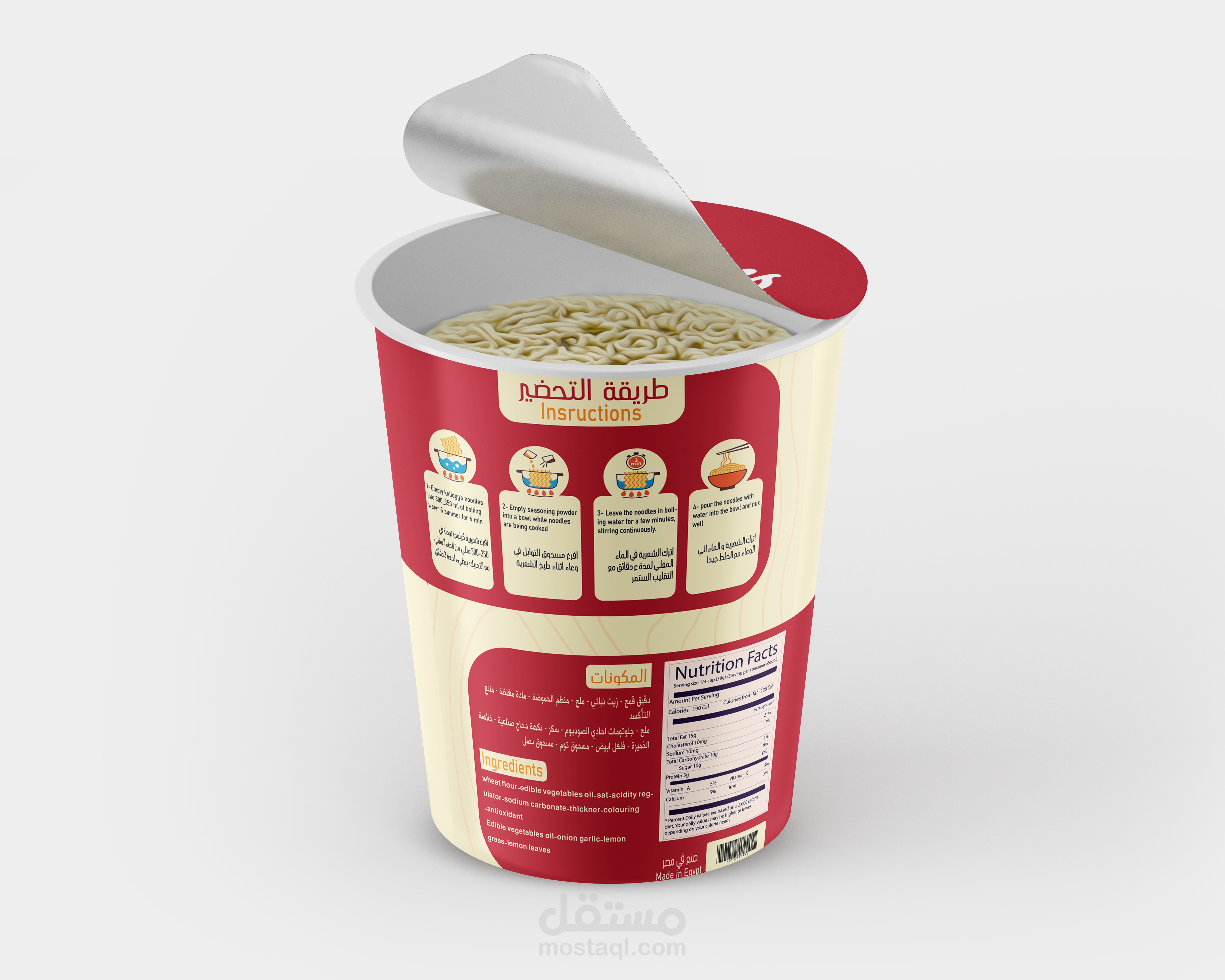 This project is a creative packaging design for an instant noodles brand. The goal was to create a bold, eye-catching front package that stands out on shelves while keeping the layout clean and functional.