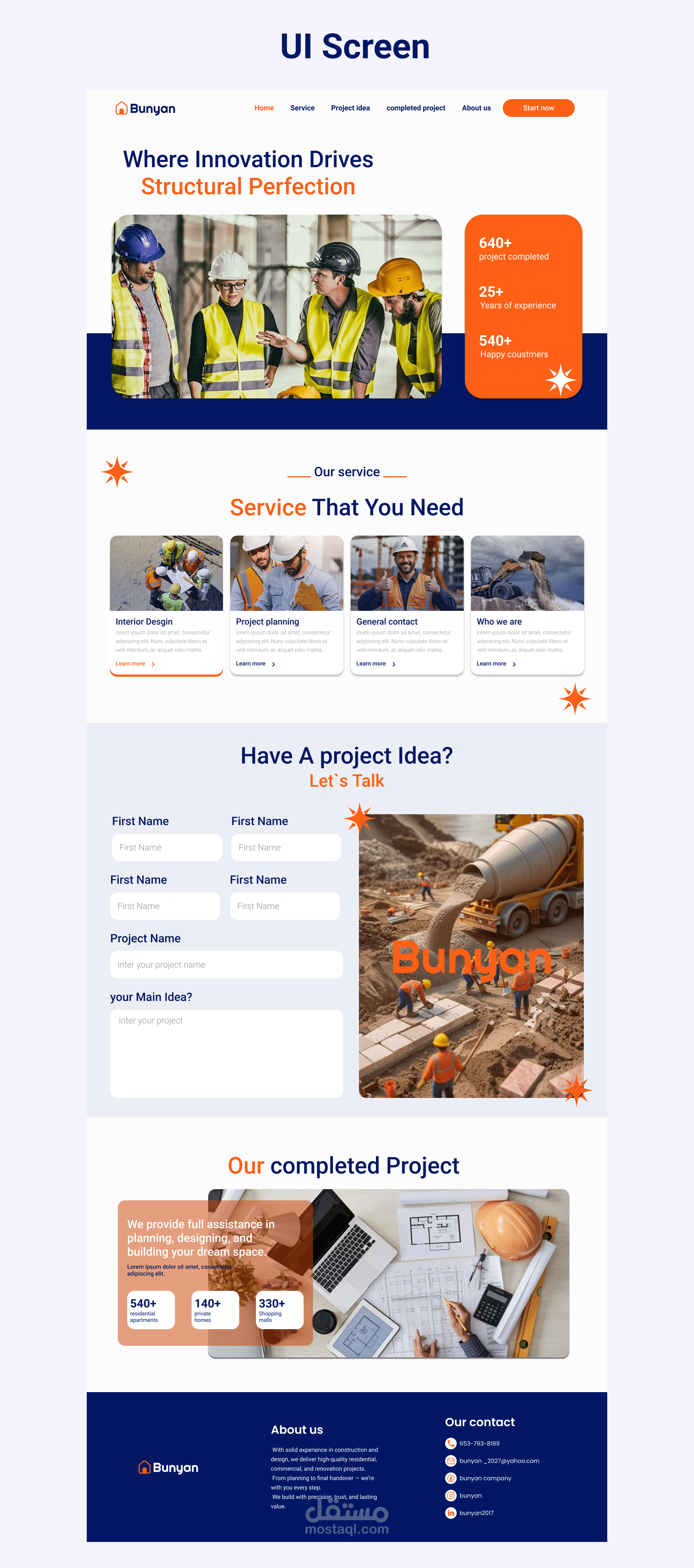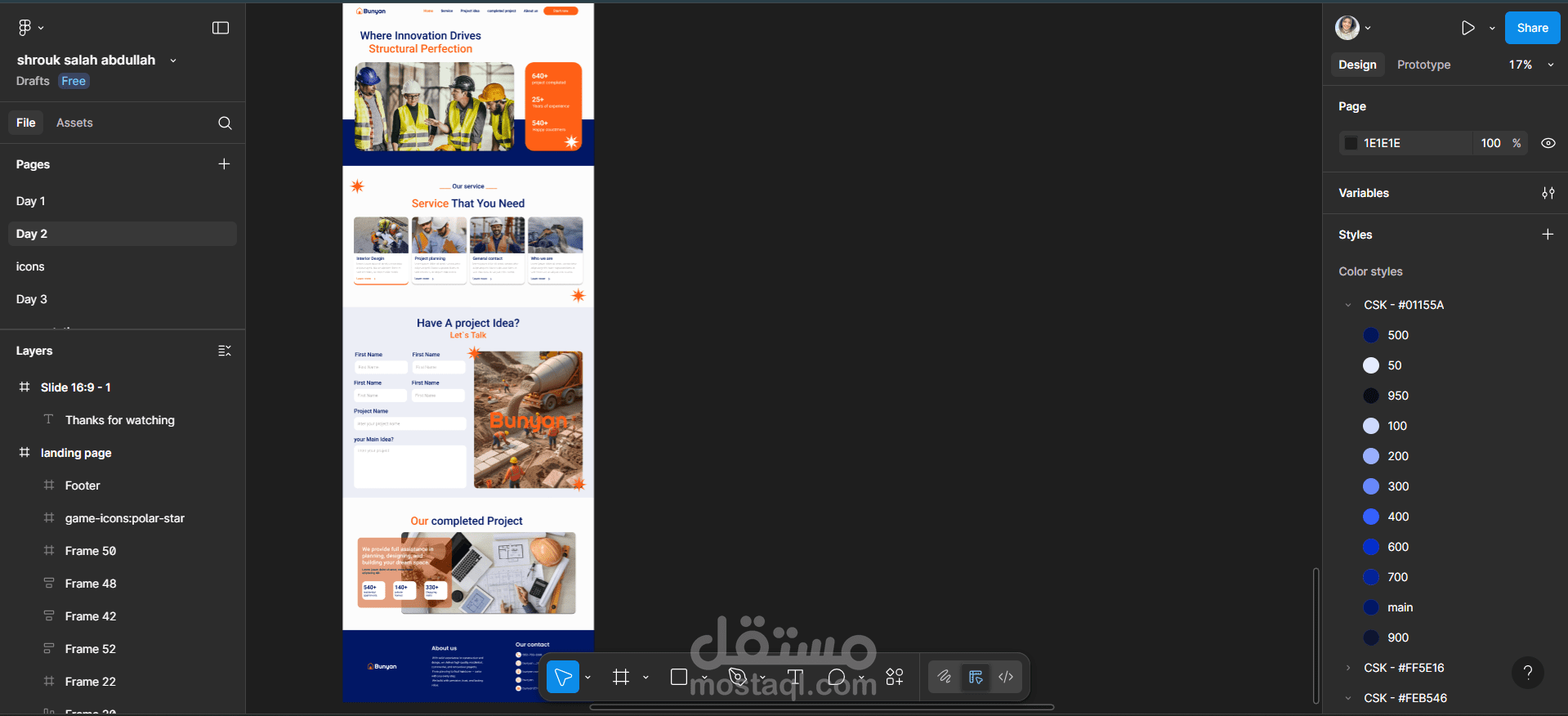 تم تصميم واجهة مشروع بنيان – شركة تطوير عقاري باستخدام برنامج Figma، مع إنشاء Prototype تفاعلي يوضح تجربة المستخدم وتدفق الصفحات بشكل احترافي.
