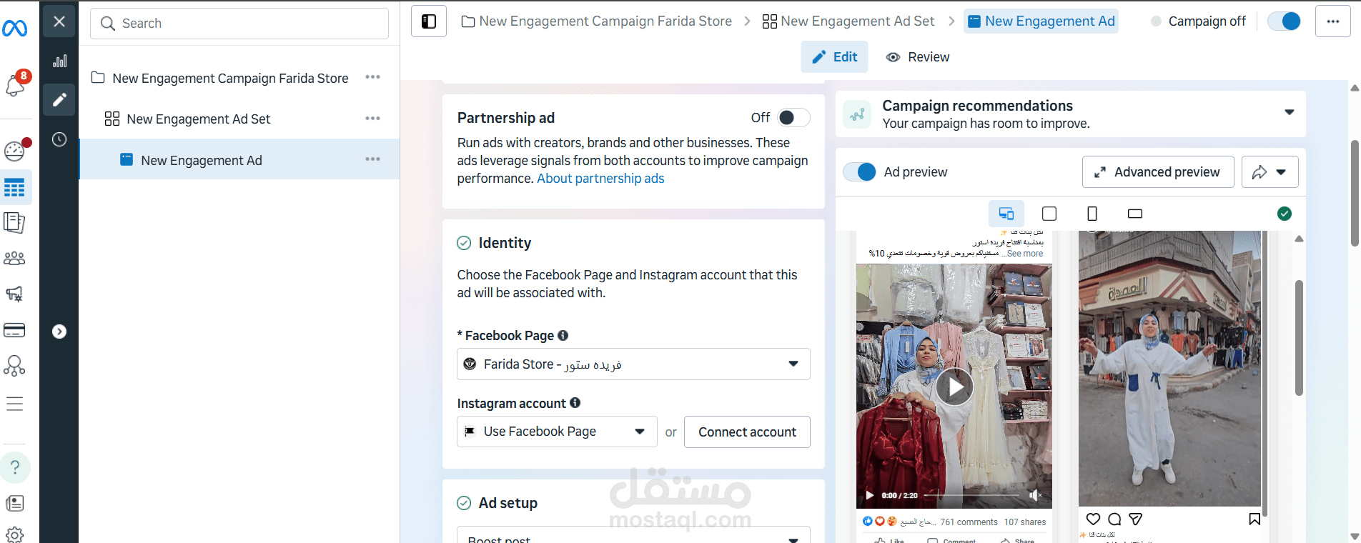 تم تنفيذ حملة إعلانية رقمية متكاملة لمحل الملابس النسائية "فريدة ستور" بهدف زيادة التفاعل وبناء مجتمع نشط حول العلامة التجارية. ركزت الحملة على استهداف دقيق للجمهور المناسب باستخدام محتوى إعلاني جذاب ومتنوع.