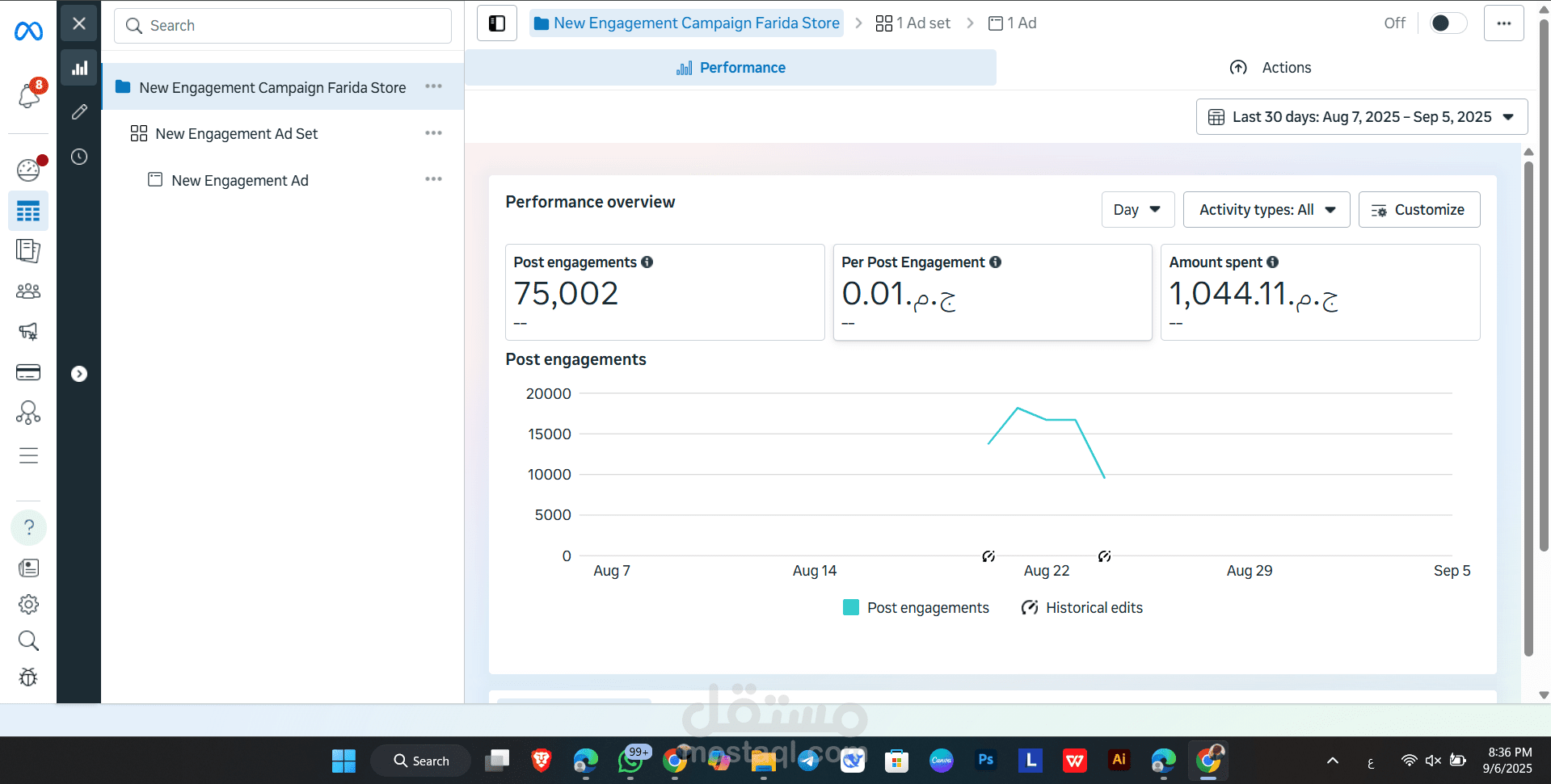 حققت الحملة 75,002 تفاعل مع المنشورات مع تكلفة منخفضة للتفاعل الواحد بلغت 0.01 جنيه، بميزانية إجمالية تبلغ 1,044.11 جنيه.