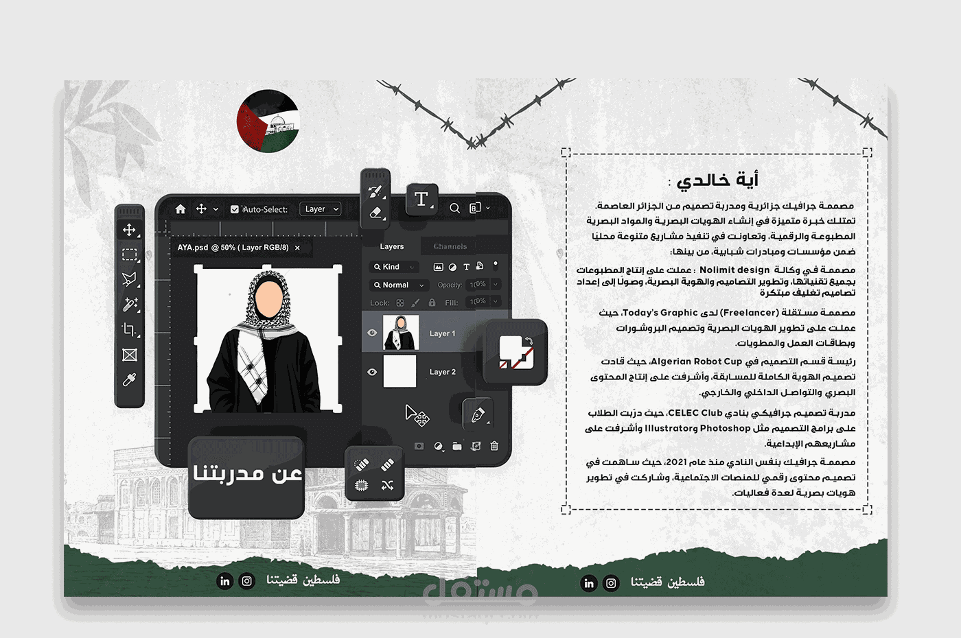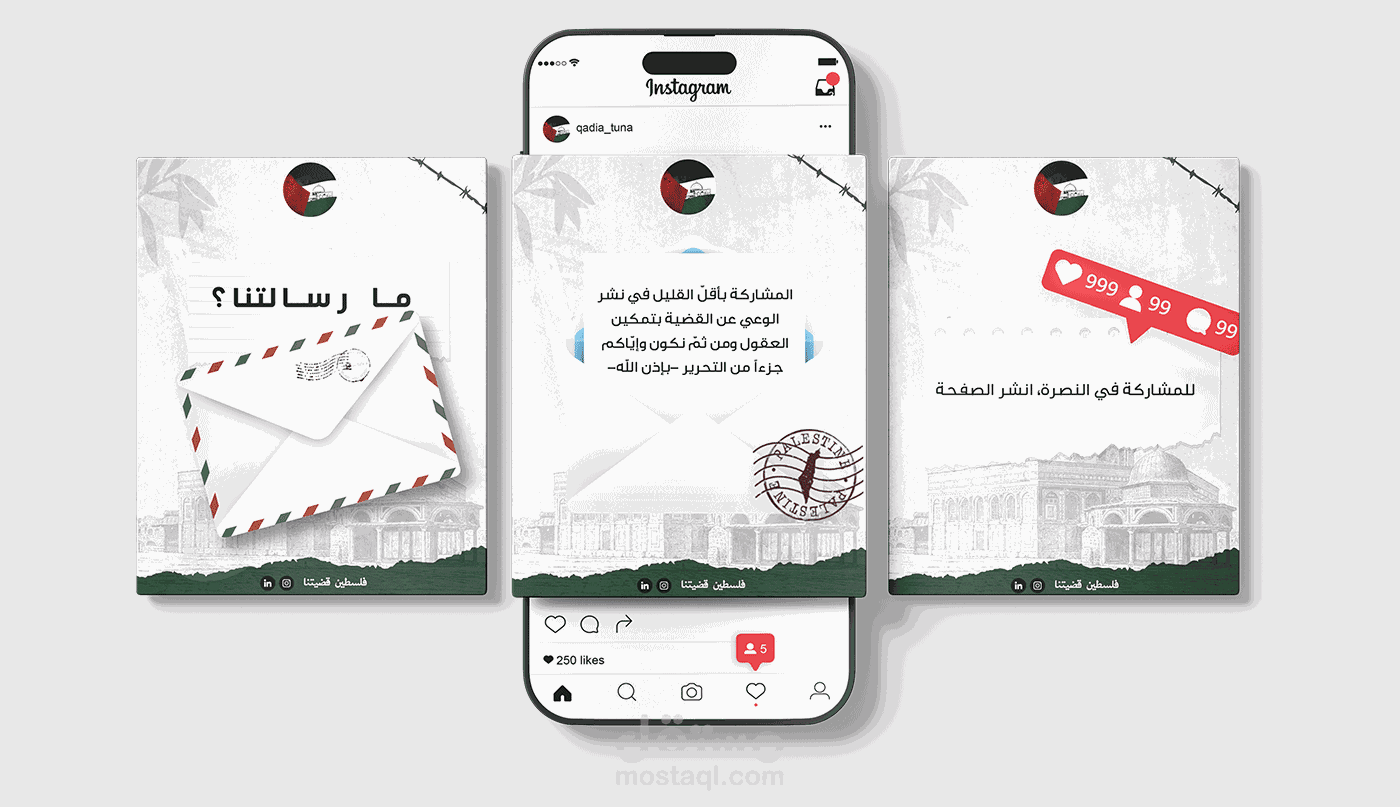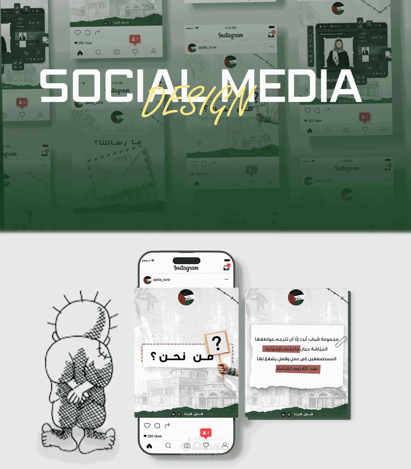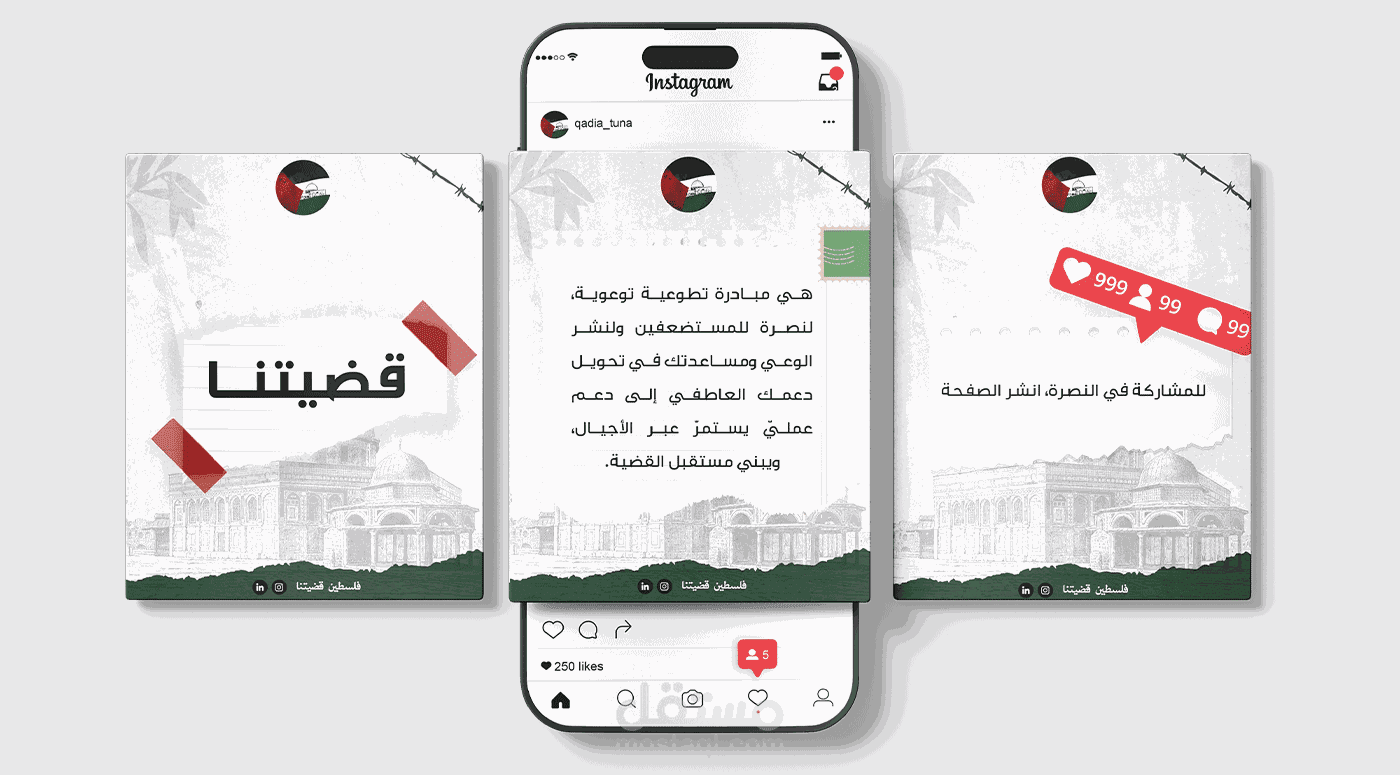 تصاميم "قضيتنا" ليست مجرد صور، بل رسائل بصرية تحمل روح الهوية الفلسطينية والعربية، وتدمج بين الوعي، المقاومة، والثقافة.