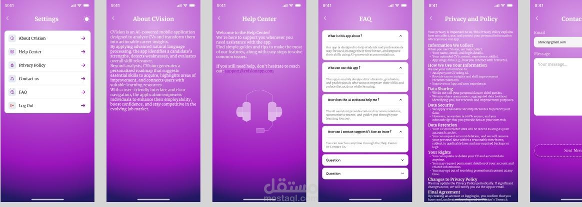 تطبيق CVision مبني باستخدام Flutter ويهدف لمساعدة المستخدمين في تطوير مسارهم المهني بشكل شخصي وذكي. من خلال رفع السيرة الذاتية الخاصة بهم، يحصل المستخدمون على تحليل شامل لنقاط القوة والضعف لديهم، ويقترح عليهم التطبيق المهارات التي يحتاجون لتعلمها ليصبحوا مؤهلين لسوق العمل، مع تقديم خطة طريق واضحة لمتابعة تقدمهم.