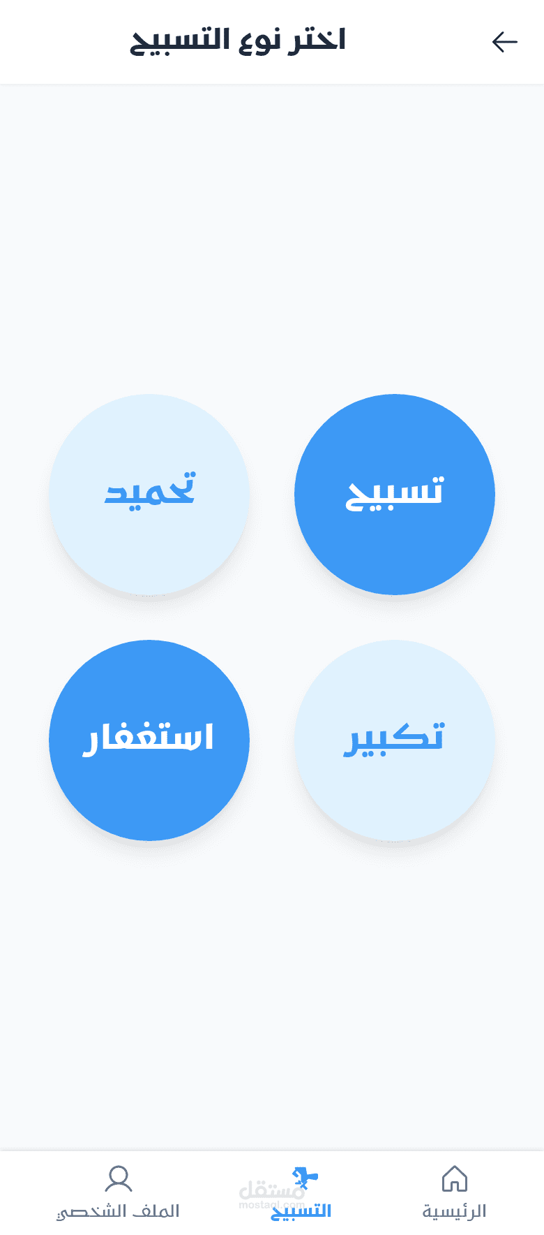 هذا المشروع هو واجهة تطبيق تسابيح (برنامج ذكر) للهواتف الذكية، صُمم ليكون أداة بسيطة تساعد المستخدم في أداء الأذكار والتسابيح اليومية بسهولة وتنظيم.