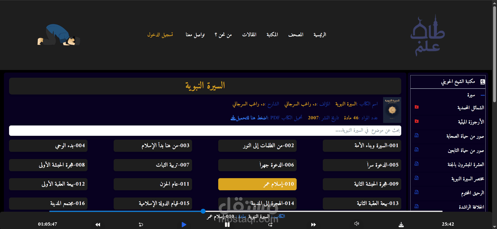 • Built an interactive Qur’an platform that displays entire surahs and allows users to select their preferred reader.