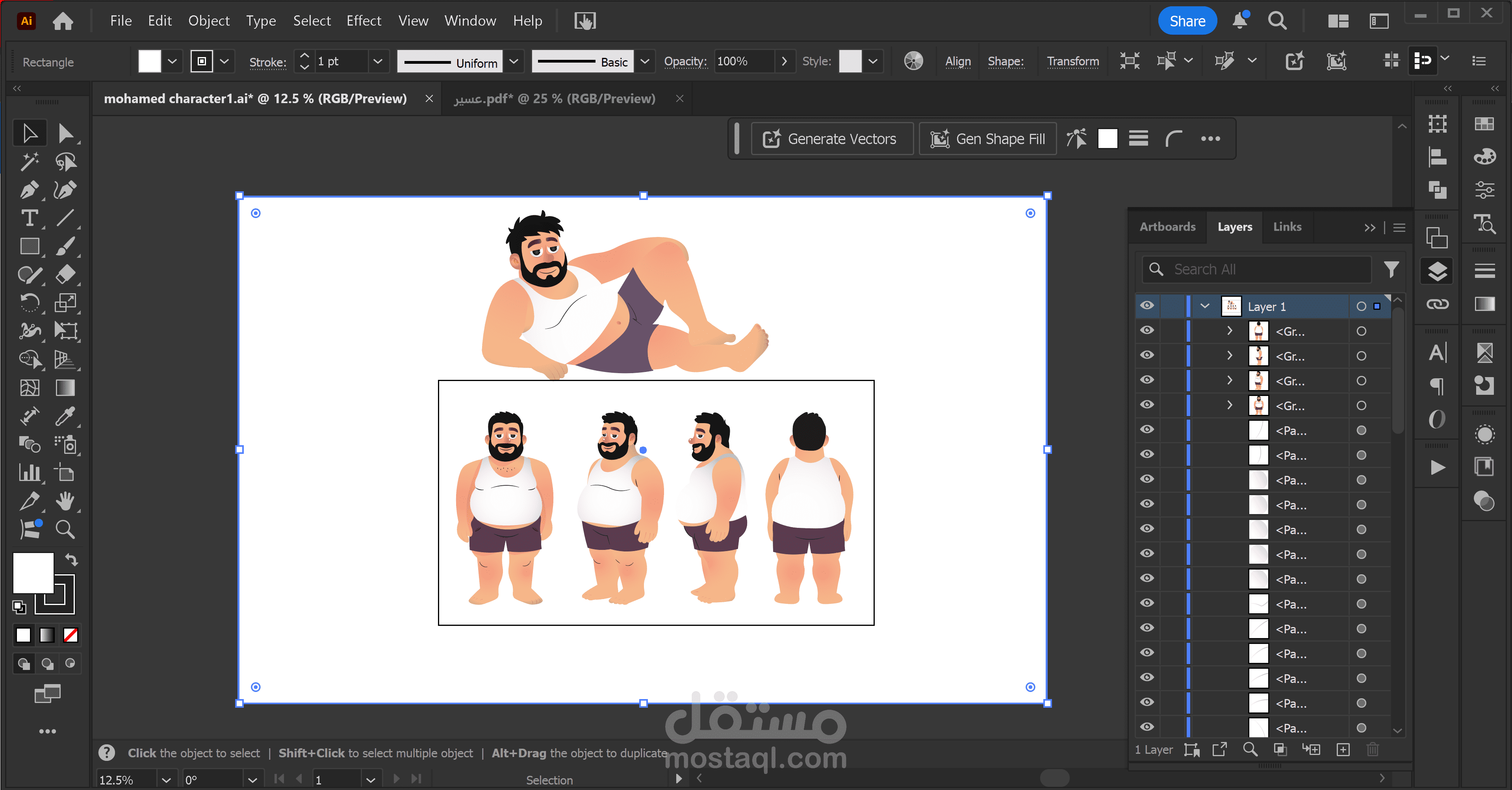 تصميم شخصية كرتونية بأسلوب 2D Vector باستخدام Adobe Illustrator.