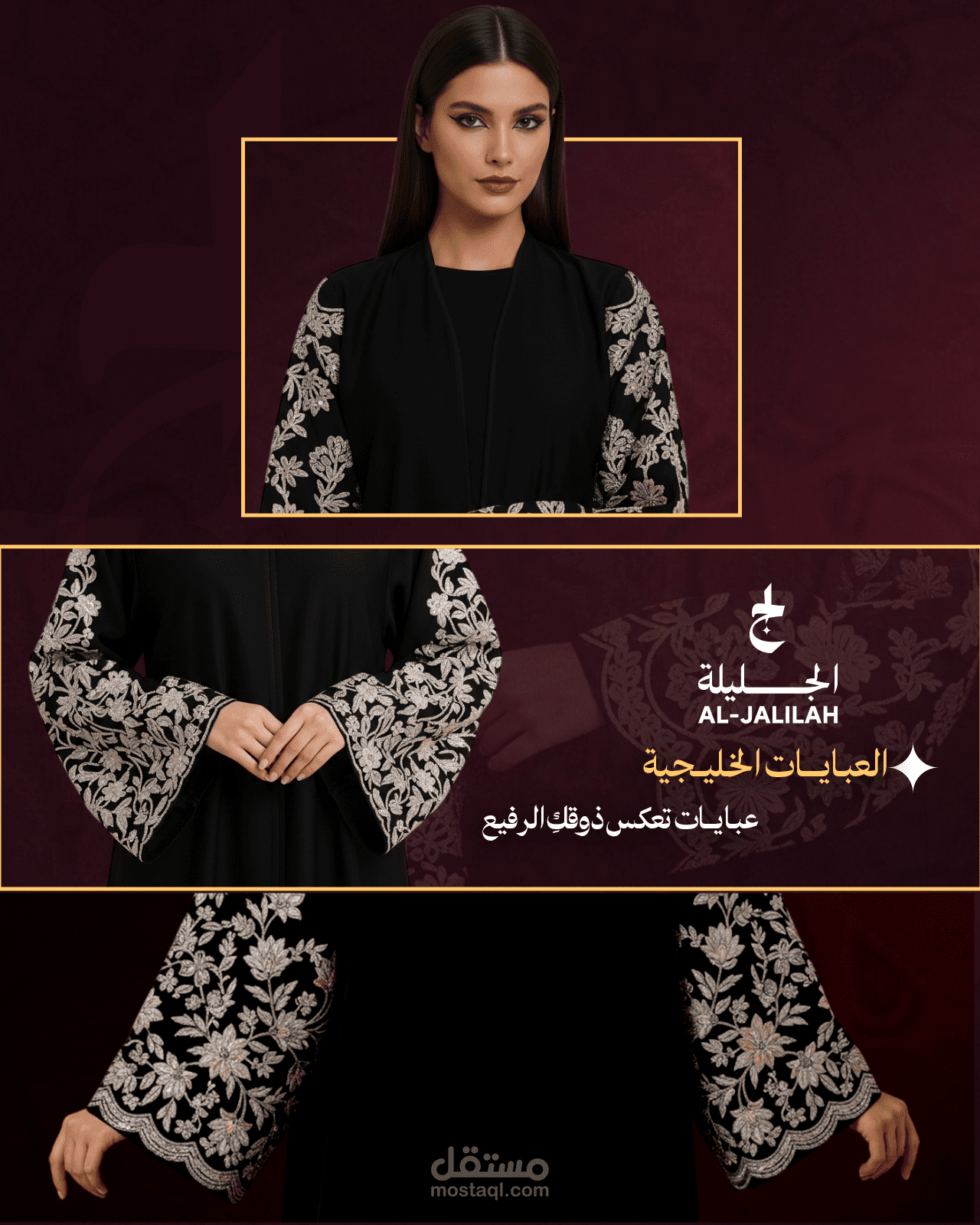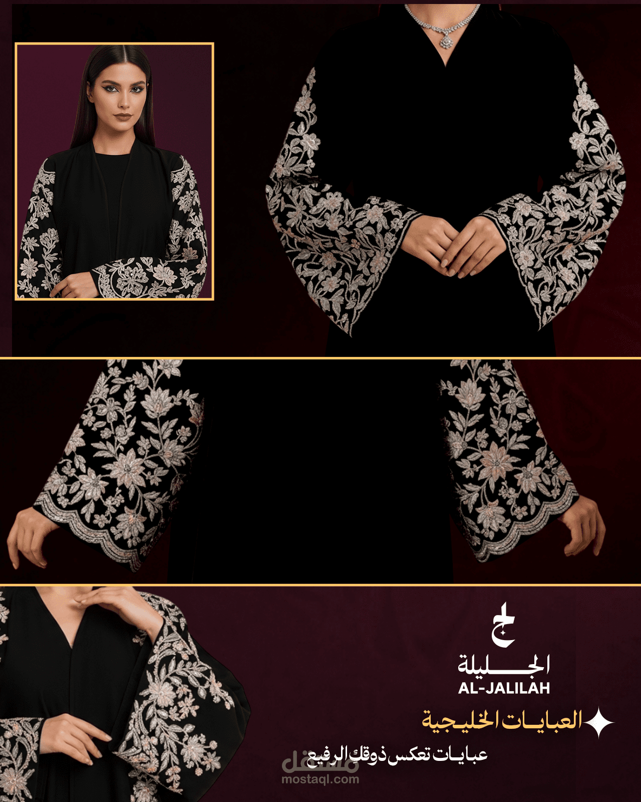 This project includes a set of promotional banners designed for Jaleelah Store. The focus was on visually reflecting the brand’s elegant and feminine identity. Adobe Photoshop was used to craft clean, eye-catching designs optimized for various social media platforms.