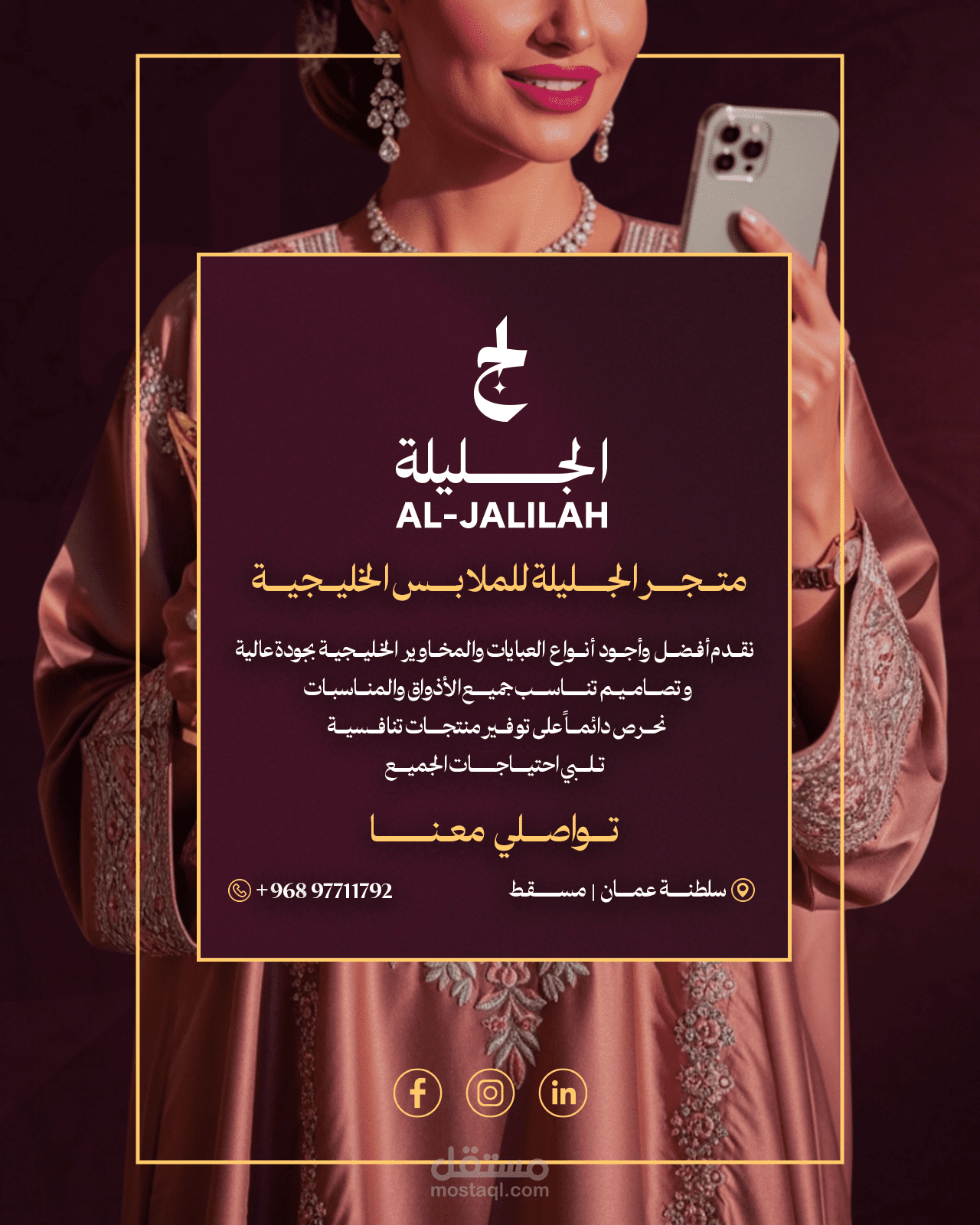 في هذا المشروع، تم تصميم مجموعة من البنرات الترويجية لمتجر "جليلة"، مع التركيز على إبراز هوية المتجر بأسلوب بصري جذّاب واحترافي.