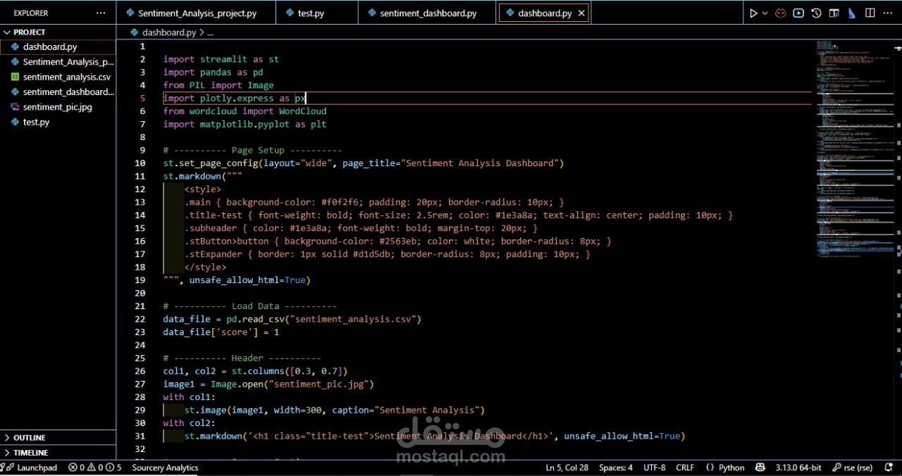 قمت بتطوير نموذج بسيط لتحليل المشاعر (Sentiment Analysis) باستخدام لغة Python ومكتبات مثل NLTK / TextBlob.