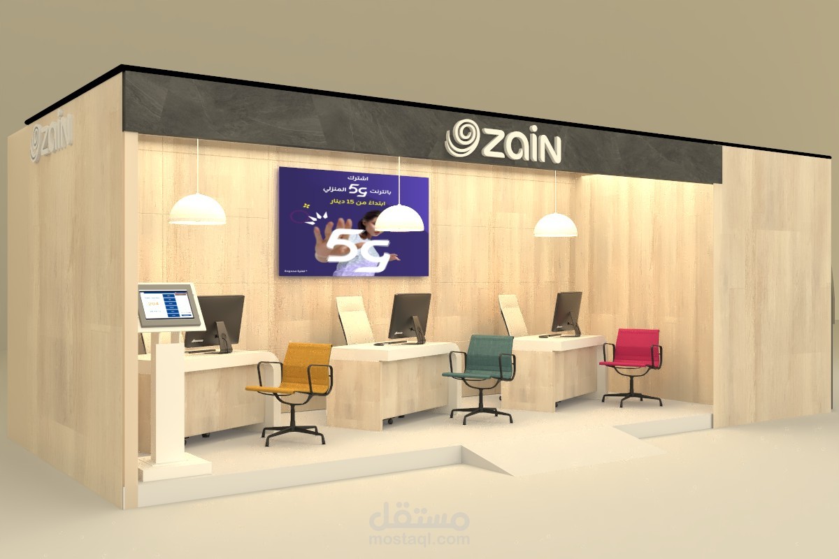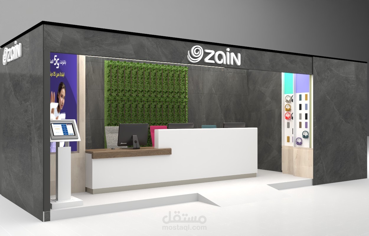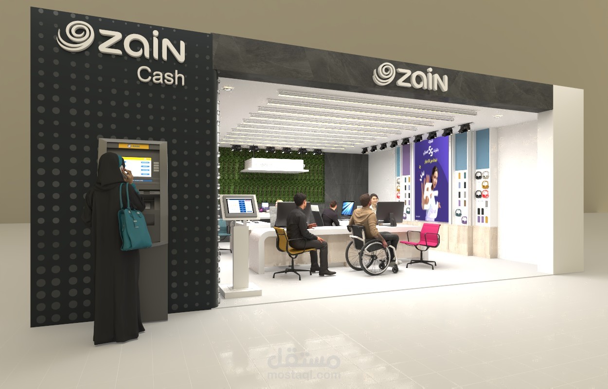 بالتعاون مع مكتب ميا الهندسي تم تصميم فروع زين المختلفة في المولات في مدينة عمان سنة ٢٠٢٤. وتم استخدام اوتوكاد وثري دي ماكس والفوتوشوب لتصميم واظهار وتعديل المخططات للمشروع وتم تسليمه نهاية سنة ٢٠٢٤ ونفذ بعد المعاينة والموافقة.
