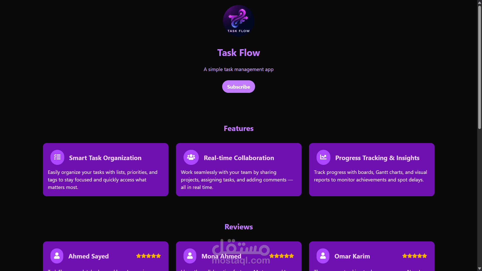 مجموعة من تطبيقات الويب العملية تشمل صفحة هبوط (Landing Page)، ومدوّنة شخصية، ولوحة معلومات للطقس (Weather Dashboard). تبرز هذه المشاريع استخدام تصميم واجهات حديثة بتقنية React وTailwind CSS، إلى جانب دمج واجهات برمجية (API Integration)، وإدارة الحالة (State Management)، وبناء مكوّنات قابلة لإعادة الاستخدام.