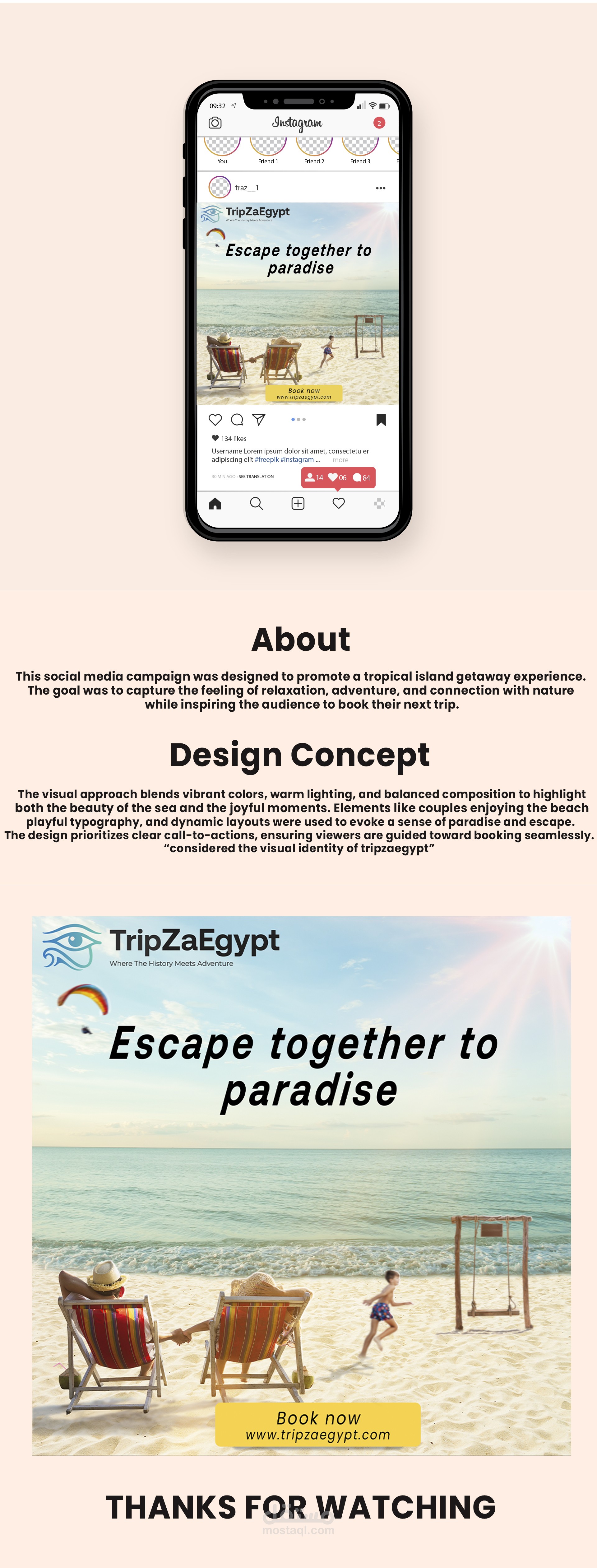 About : This social media campaign was designed to promote a tropical island getaway experience. The goal was to capture the feeling of relaxation, adventure, and connection with nature while inspiring the audience to book their next trip.