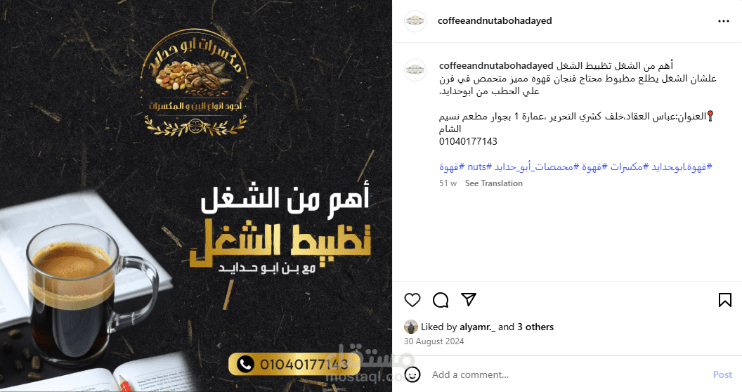 إدارة 3 حسابات لعملاء: حسابين في مجال العقارات وحساب واحد في مجال القهوة والمكسرات.