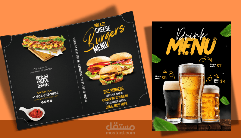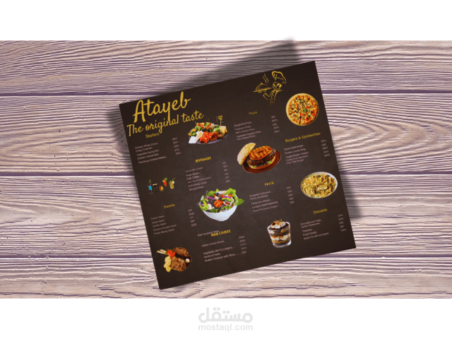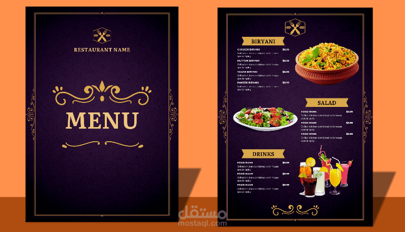 تصميم منيو عصري وبسيط وألوان هادية لمطعم