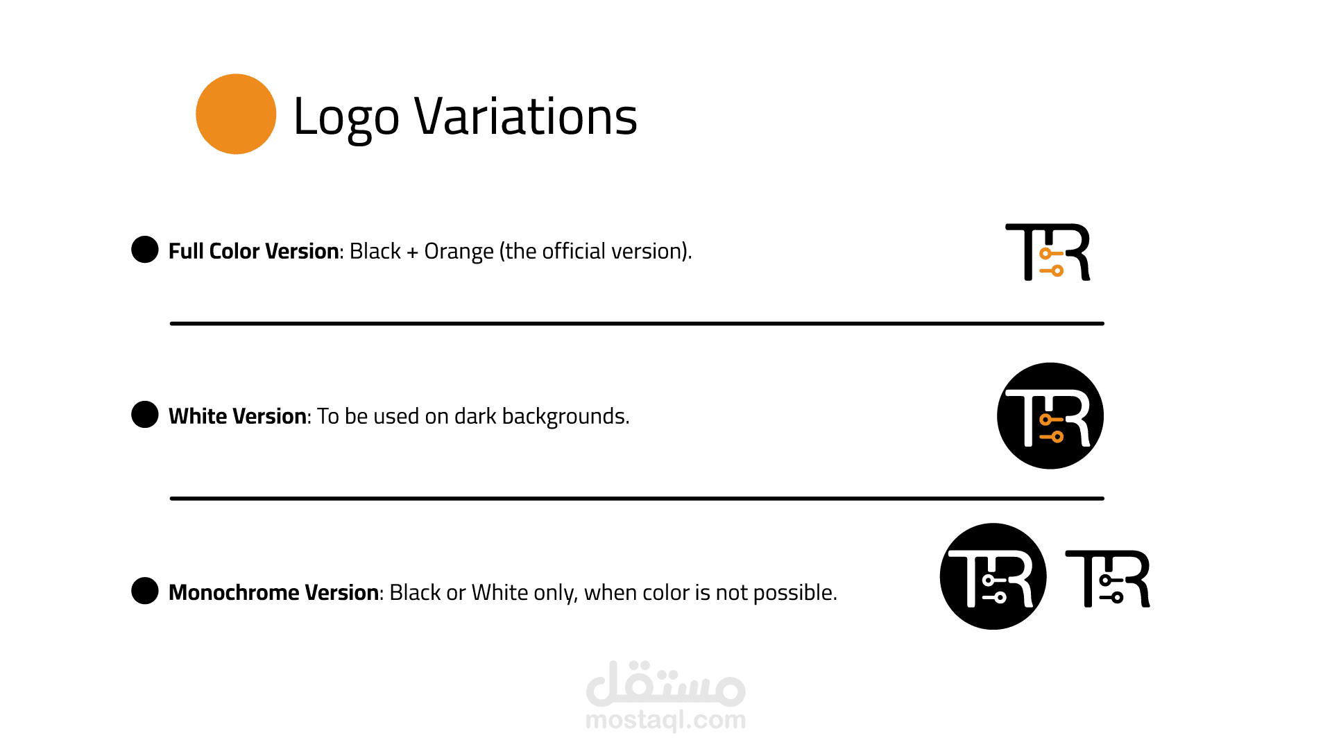 The visual identity combines clean geometric shapes, a bold black base, and vibrant orange accents to communicate both professionalism and innovation. The system includes a primary logo, secondary icon (TR), and multiple variations designed for digital, print, and outdoor applications.