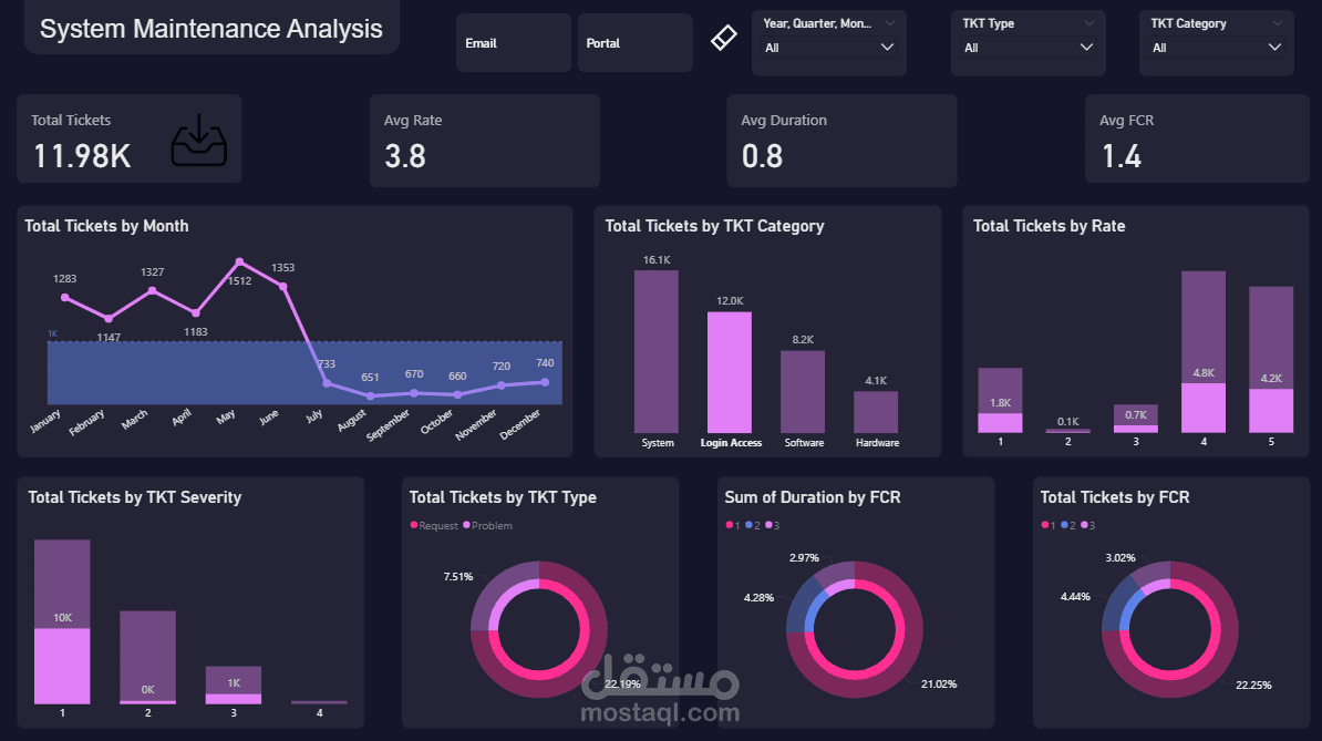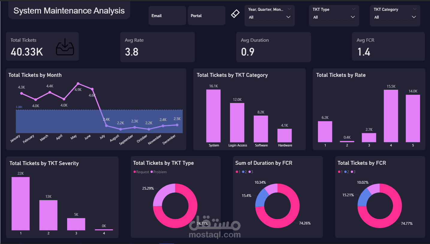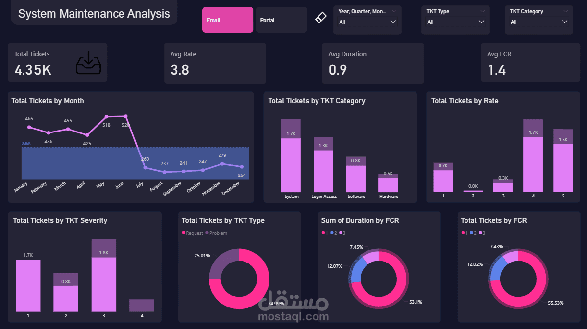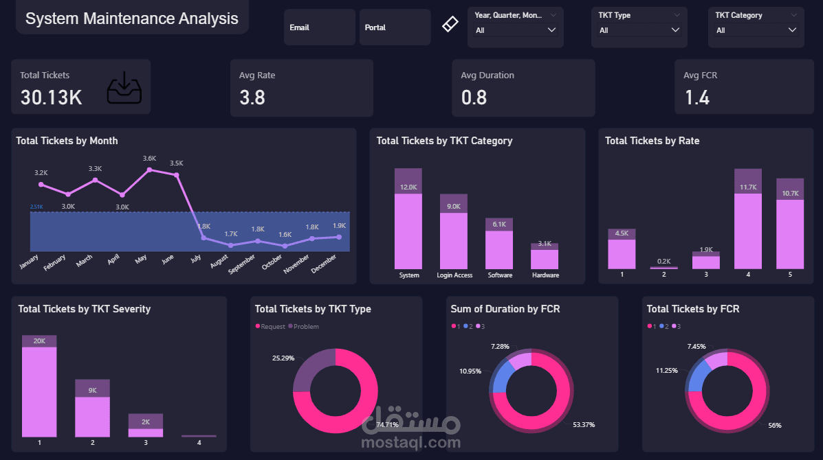 واجهة مصممه باستخظام Power BI & Excel لتحليل الطلبات أو المشاكل التقنيه التي يقدمها العملاء