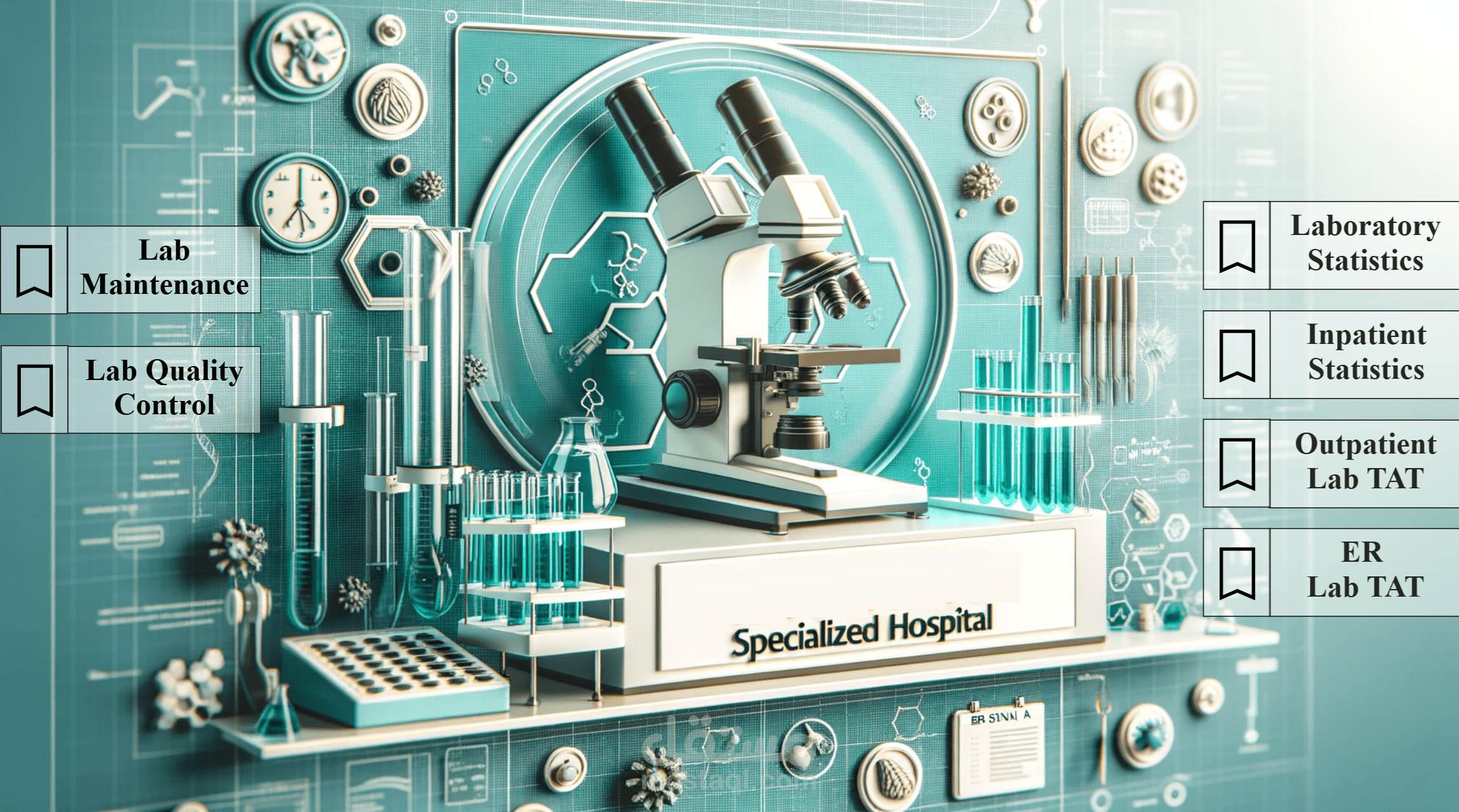 لوحة تحكم تفاعلية (dashboard) تم إنشاؤها باستخدام Power BI بعنوان "TAT Lab Result". تحتوي اللوحة على عدة عناصر: