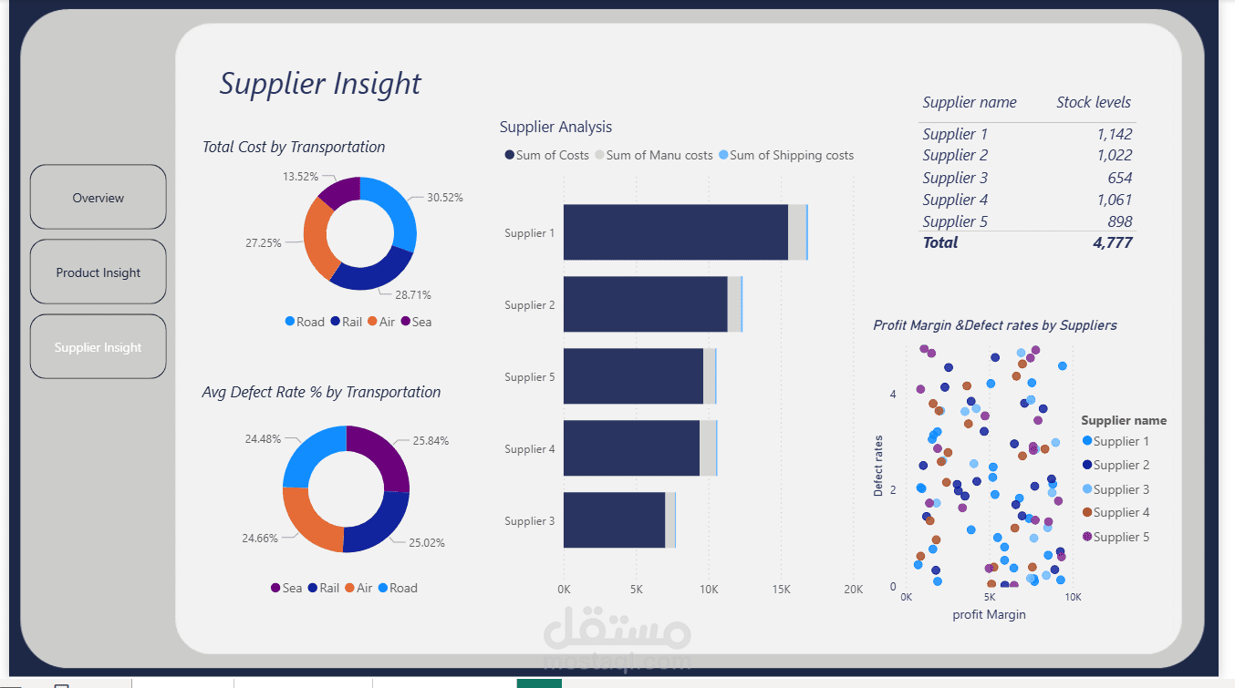 كجزء من تطوير مهاراتي في ذكاء الأعمال وتحليل البيانات، أنجزت مشروعًا مستقلًا لتصميم لوحة معلومات تفاعلية لسلسلة التوريد باستخدام Power BI.