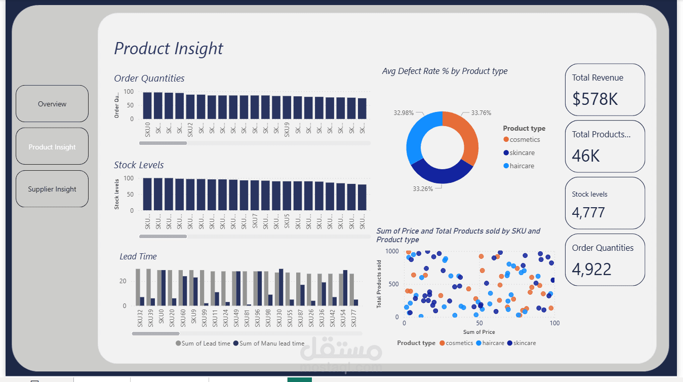 رؤى حول المنتجات: الطلبات، المخزون، أوقات التوريد، ونسب العيوب.