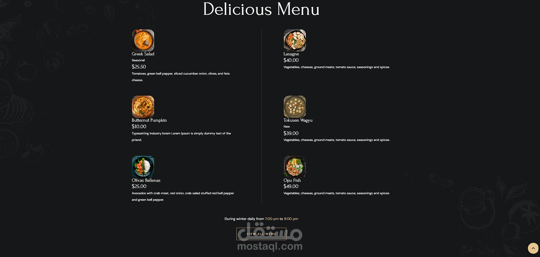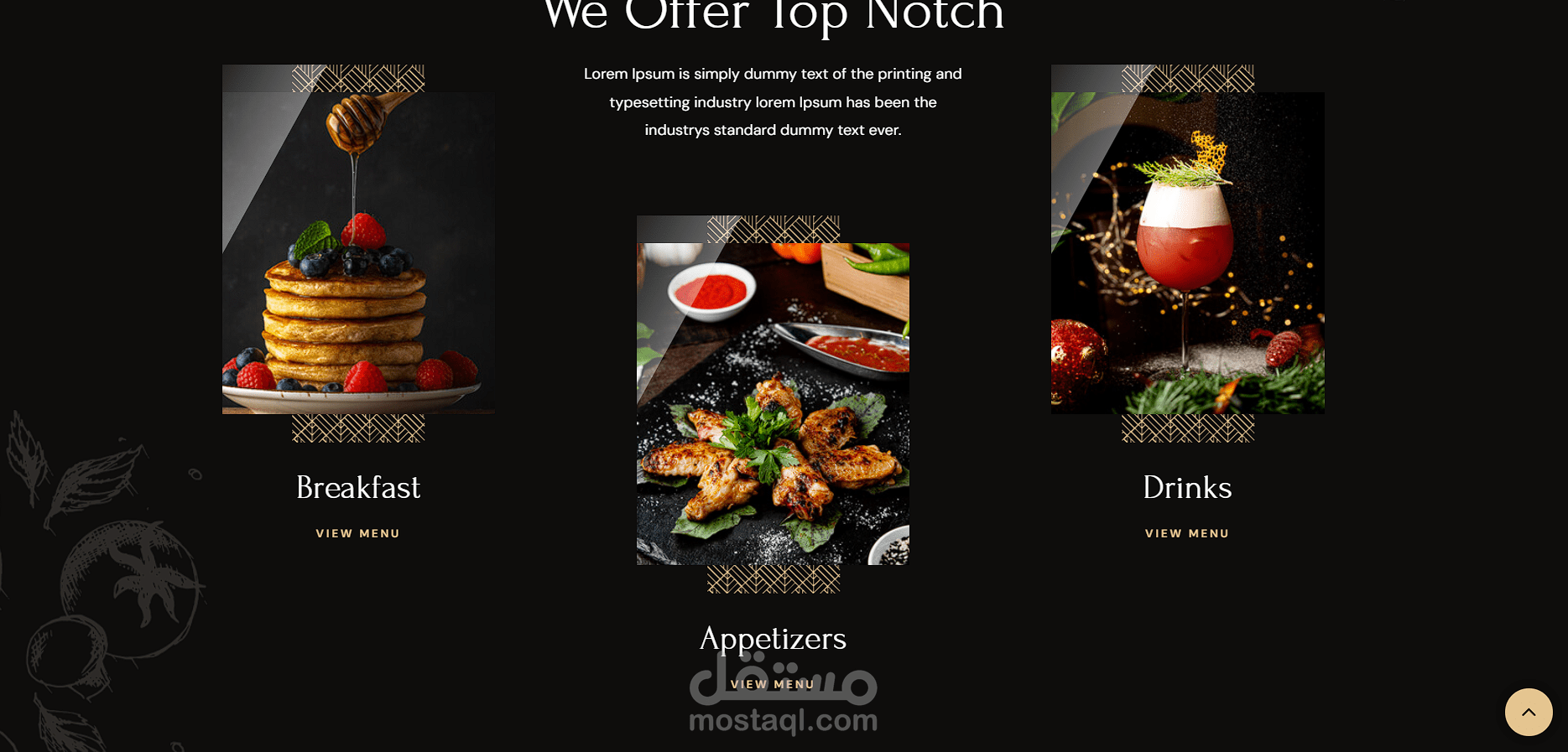 واجهة مستخدم تفاعلية حديثة مصممة لإدارة وعرض خدمات مطعم بشكل أنيق وسهل الاستخدام، مع التركيز على تحسين تجربة العميل وسرعة الوصول إلى الطلبات.