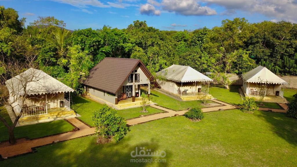 منتجع سياحي يحتوي على مجمع من الشاليهات ومزعه متكاملة بالطابع الريفي على مساحة 60 ألف متر